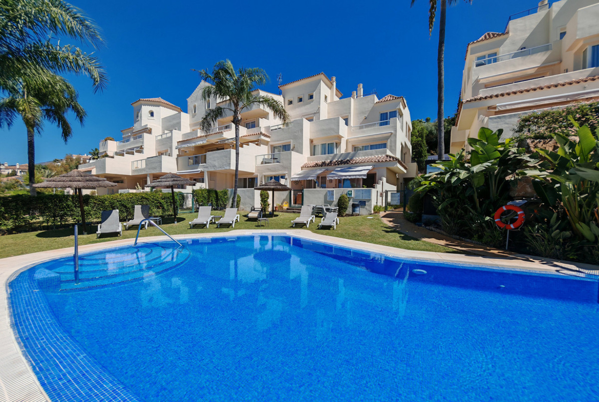 Dit prachtige appartement beschikt over 2 slaapkamers en 2 badkamers, met een ideale zuidwestelijke oriëntatie. Het complex biedt een gemeenschappelijk zwembad en een fraai aangelegde gemeenschappelijke tuin.
