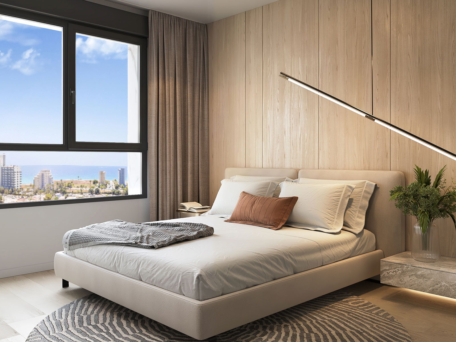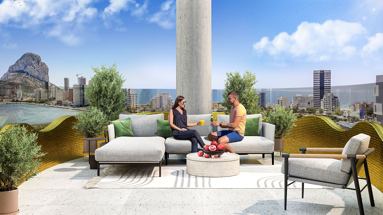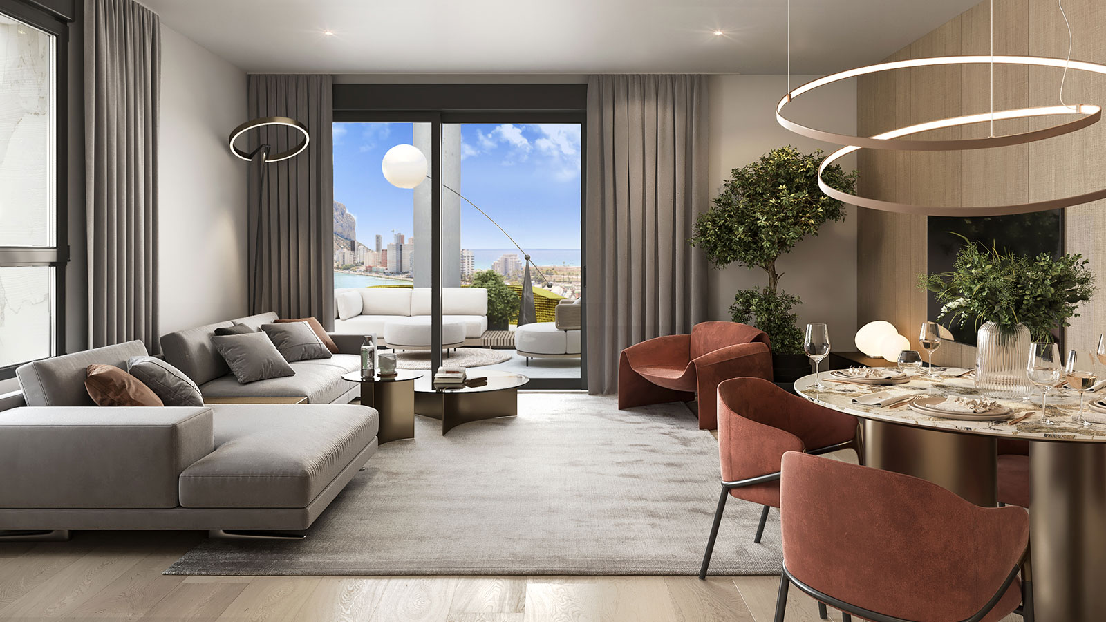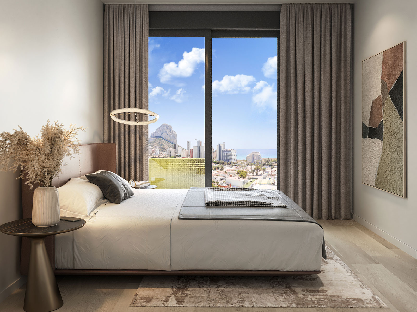 Dit appartement op het zuiden bevindt zich op de 13e verdieping van een architectonisch verbluffend gebouw en biedt een ononderbroken uitzicht op de meest iconische landschappen van Calpe. Vanaf de terrassen kunt u genieten van een cirkelvormig panorama van de stranden van Arenal en Fossa, de lagune van Las Salinas en de opvallende Peñón de Ifach. Elke ochtend en middag baadt het huis in natuurlijk licht, waardoor lucht en zee samensmelten in een werkelijk meeslepende woonervaring.