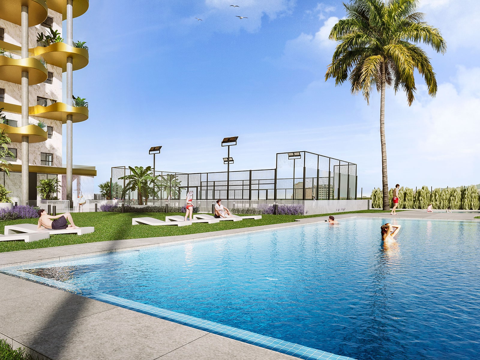 Bewoners hebben toegang tot royale gemeenschappelijke ruimtes, waaronder een zwembad, een paddlebaan, een fitnessruimte, een calisthenicszone en een kinderspeelplaats. De ontwikkeling ligt op slechts één perceel afstand van de lagune en biedt zowel rust als gemak.