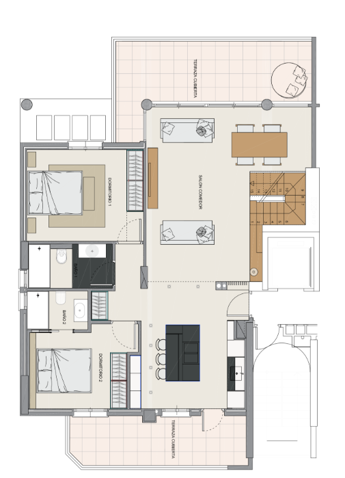 De woning beschikt over drie slaapkamers en drie badkamers, allemaal afgewerkt tot een hoog niveau. Het is opnieuw ingericht in 2025 en wordt volledig gemeubileerd verkocht, klaar om in te trekken. De open woonkamer sluit naadloos aan op het grote terras, waardoor een ideale ruimte ontstaat om te ontspannen en te entertainen.