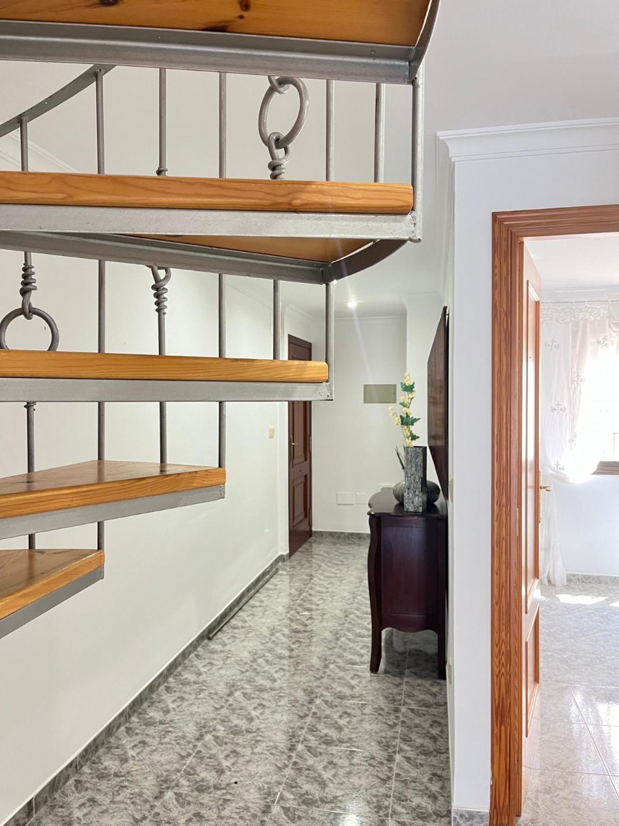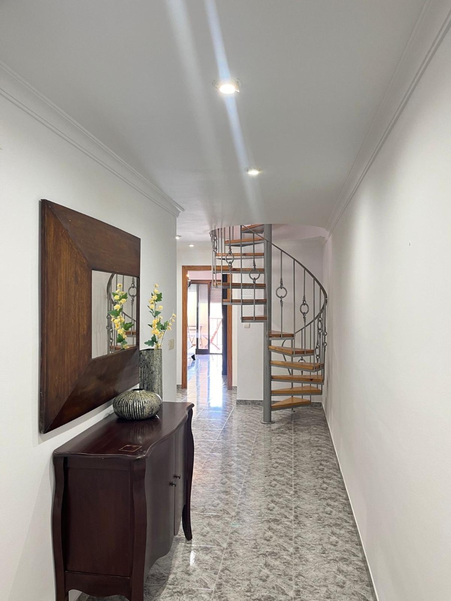 Penthouse Apartment for Sale in MorairaA duplex penthouse apartment is available for sale in Moraira town centre. The apartment boasts two large balcony terraces, a third smaller balcony terrace, a southwest orientation, and unobstructed sea views towards the Peñon de Ifach.The apartment has two entrances on each floor. The lower floor includes an entrance hall, two double bedrooms, a bathroom with a shower, and a private balcony terrace leading from the larger bedroom.The first floor is internally connected with a spiral staircase and features two bedrooms, two bathrooms, a lounge with a fireplace, a dining room, a modern kitchen with another dining area, a storage room, and two large private terraces. The rear terrace further benefits from two additional storage areas, one with a bathroom.Property Features: hot and cold air conditioning, ceiling fans, aluminium external carpentry with double glass, a wood-burning stove in the lounge, modernized bathrooms, and kitchen.