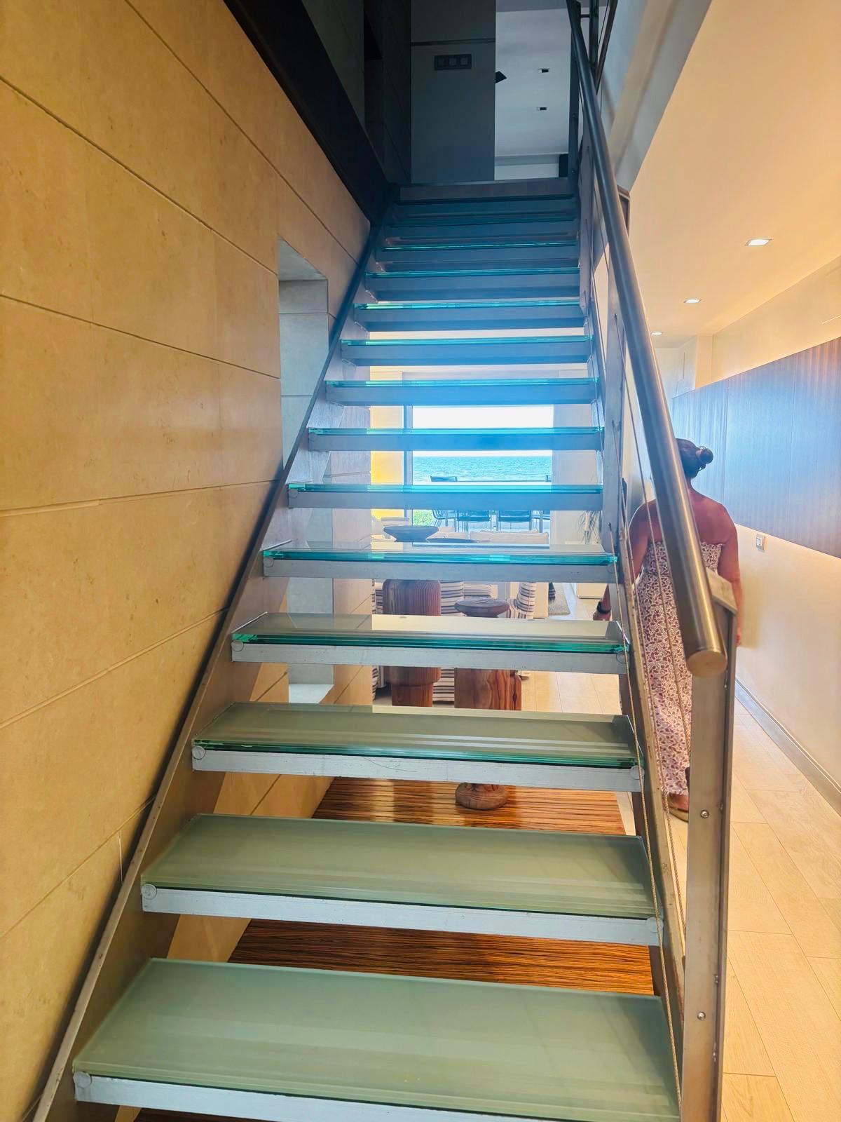 De begane grond staat in directe verbinding met de aangelegde gemeenschappelijke ruimtes met zwembad en biedt directe privétoegang tot het strand. Het heeft ook een eigen ruimte met een douche, een kleedkamer en een overdekte buitenruimte, ideaal om comfortabel terug te keren van het strand.