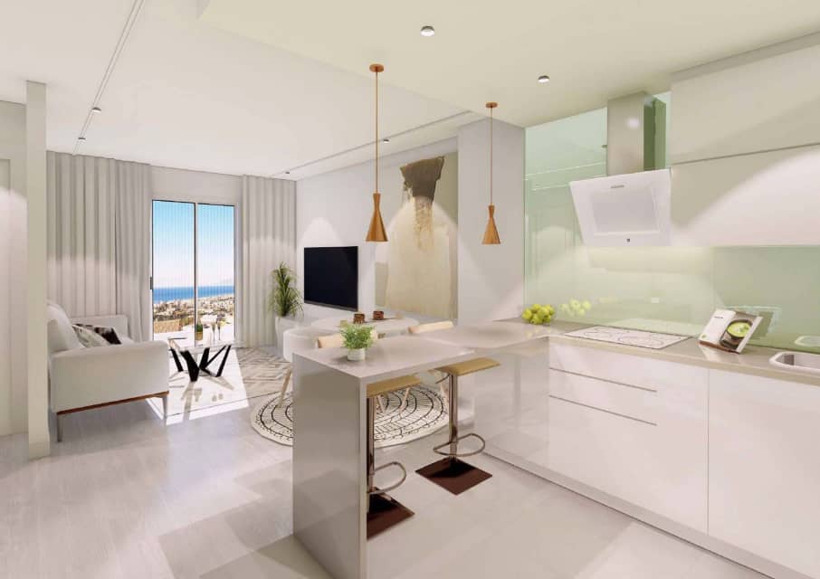 Het architectonische ontwerp van het project past harmonieus in de omgeving en combineert eigentijdse lijnen met ruime terrassen en grote ramen die het natuurlijke licht maximaliseren. Vanuit elke woning is een spectaculair uitzicht op de Middellandse Zee te bewonderen, wat een ontspannen en exclusieve sfeer creëert. De penthouses, met privé solariums, zijn de ideale plek om tot rust te komen en te genieten van unieke momenten in de buitenlucht.