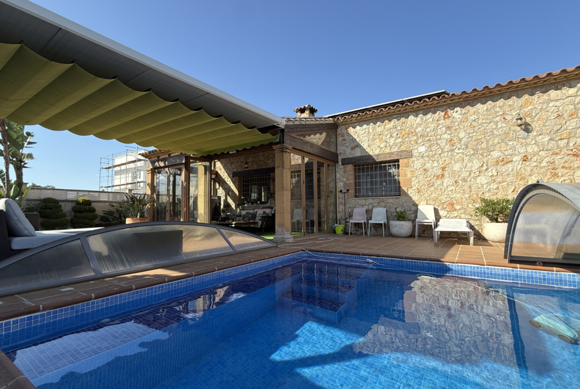 De woning beschikt over een ondergrondse wijnkelder, een opslagruimte van 20 m², airconditioning in alle kamers, een houtgestookte open haard in de woonkamer en een indrukwekkend overdekt en verwarmd zoutwaterzwembad van 8×4 m met elektrolyse en automatische pH-regeling. Plafonds van meer dan 4 meter hoog creëren overal in het huis een uitzonderlijk gevoel van ruimte en licht.
