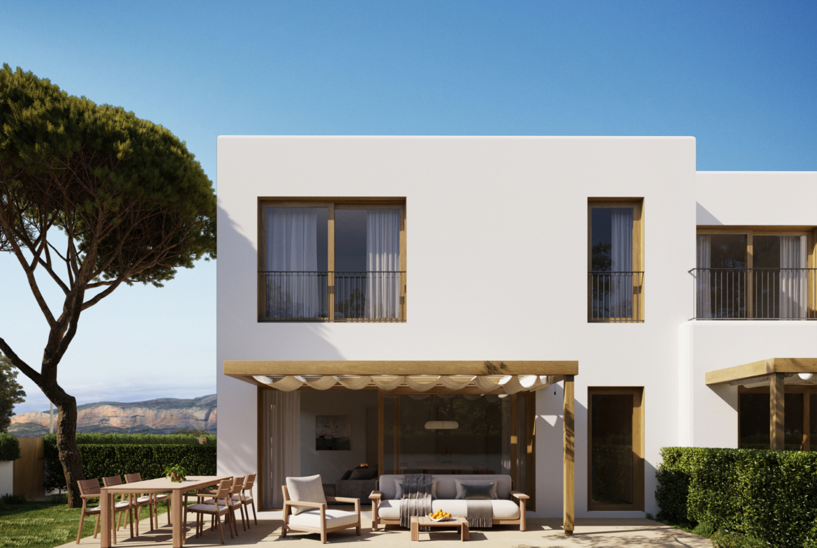 De leefruimte bestaat uit een ruime lounge en eetkamer die naadloos aansluiten op de open keuken, ontworpen voor een lichte en eigentijdse woonbeleving. De hoofdslaapkamer beschikt over een praktische kleedkamer en een complete badkamer, terwijl de overige kamers voorzien zijn van ingebouwde kasten. Dankzij de dubbele beglazing, airconditioning en elektrische garagedeur is het wooncomfort het hele jaar door gegarandeerd.
