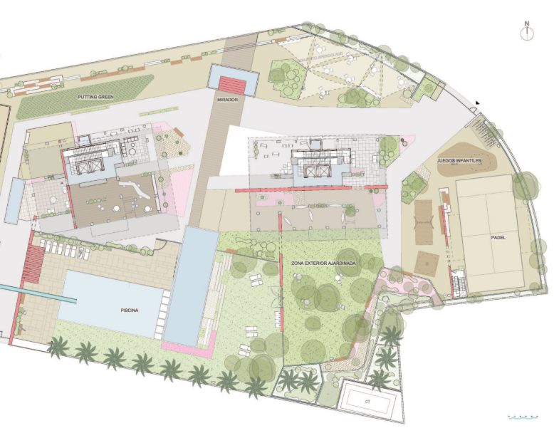 Interieur van HuizenMuren & Wanden: Pladur type wanden; geluiddichte wanden tussen eenheden.Deuren & Kasten: Versterkte hoofdingang, witte gelakte binnendeuren, ingebouwde kasten met LEDverlichting.Vloeren: Laminaat, porselein of marmer (behalve badkamers); antislip porselein op terrassen.Wand/Plafondafwerking: Keramische tegels of marmer in badkamers; glad geverfde muren/plafonds; verlaagde plafonds behalve in slaapkamers.Klimatisering: Geleide airconditioning met aerothermisch systeem, gecentraliseerde vloerverwarming, slimme huisbediening.Badkamers: Wandhangende sanitaire elementen, harsdouches met glazen wanden, regeneffectdouches, baden in hoofdbadkamers.Verlichting: Volledige LEDverlichting in hallen, badkamers en keukens.Keuken: Hoogglans laminaatkasten, quartz werkbladen, slowclose lades. Voorzien van SIEMENS apparatuur: inductiekookplaat, plafondafzuigkap, oven, magnetron, geïntegreerde koelkast, vaatwasser, wasmachinedroogmachine.
