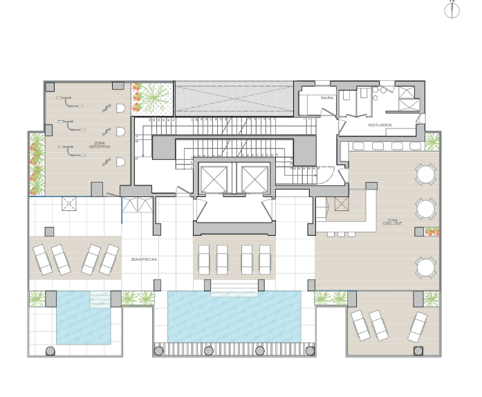 Toren 1 (verdieping 11): infinity pool, sauna, fitnessruimte, loungegebied.