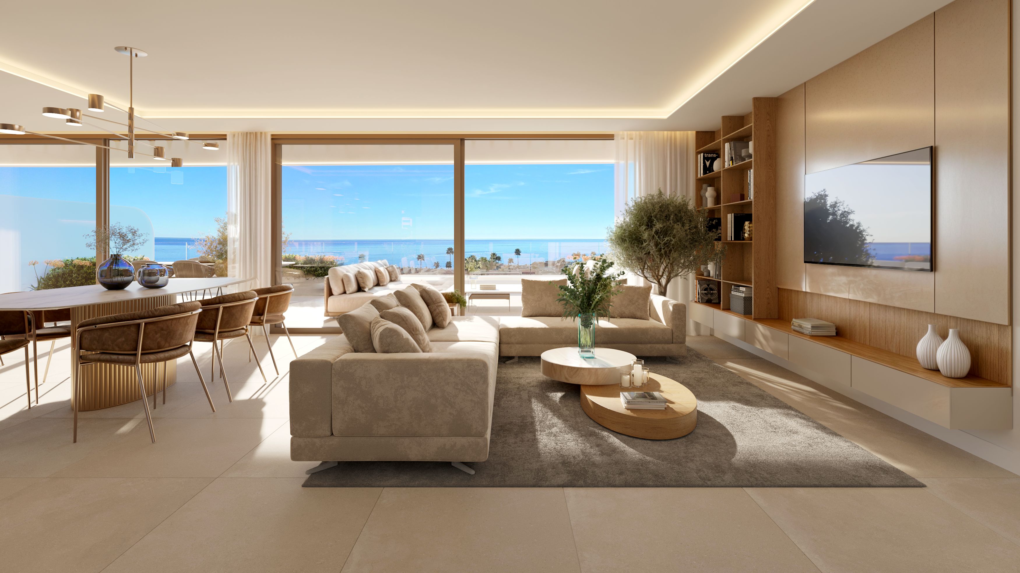 Het architectonische ontwerp valt op door zijn moderne elegantie, met strakke lijnen en hoogwaardige materialen die harmonieus samengaan met de omgeving. De woningen hebben grote terrassen en grote ramen die een open uitzicht op de zee en een overvloed aan natuurlijk licht bieden. De woningen op de begane grond hebben een privétuin die een intieme en aangename buitenruimte biedt, terwijl de duplex-penthouses een privézwembad en solarium hebben, perfect om optimaal te genieten van het mediterrane klimaat.