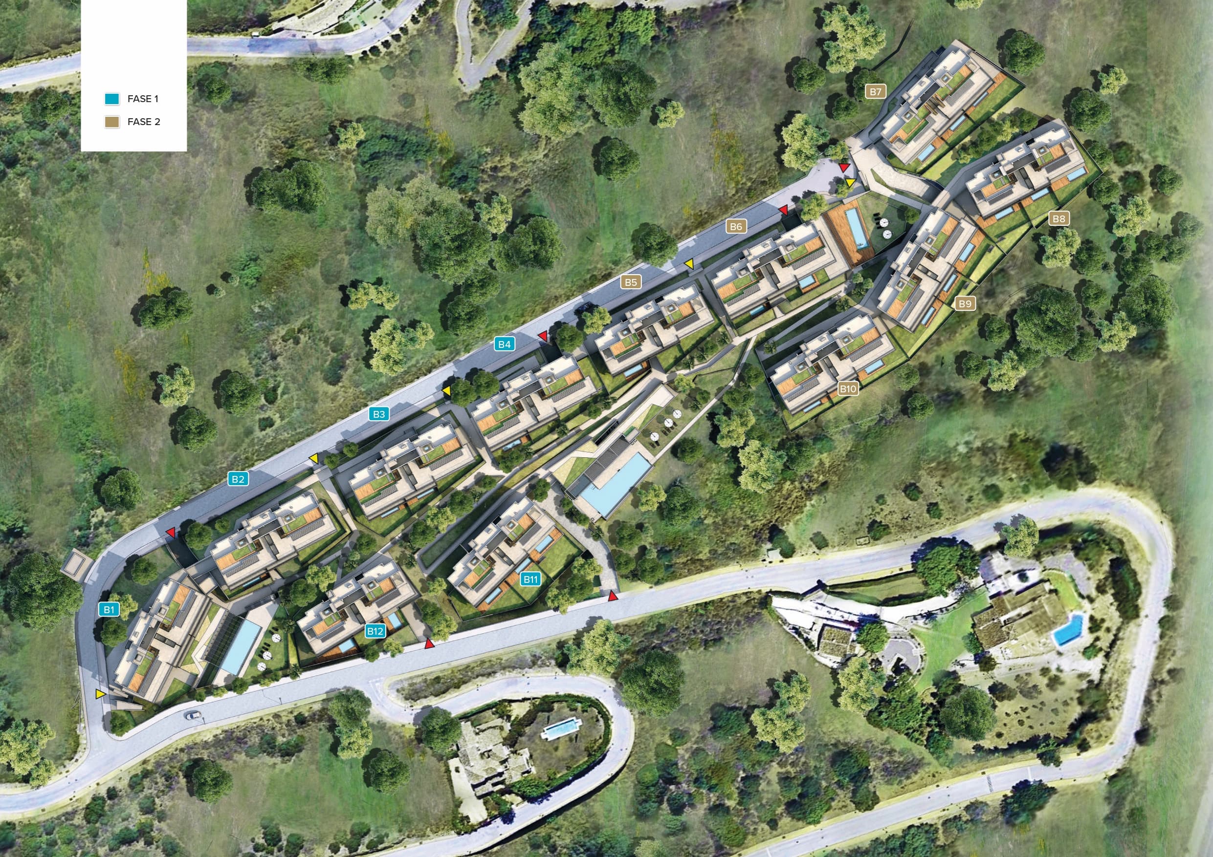 De buitenruimtes van deze eigendommen zijn zorgvuldig ontworpen om een uitzonderlijke buitenlevensstijl te bieden. Elke woning heeft een privéterras, ideaal om te genieten van het uitzicht op zee en het mediterrane klimaat. Bovendien beschikken sommige eigendommen over een solarium, perfect om te ontspannen in de zon. De privé tuinen voegen een vleugje natuur en privacy toe, terwijl de privézwembaden een persoonlijke oase bieden om af te koelen op warme dagen. De pergola's bieden schaduw en stijl, waardoor gezellige ruimtes ontstaan voor buitenentertainment.