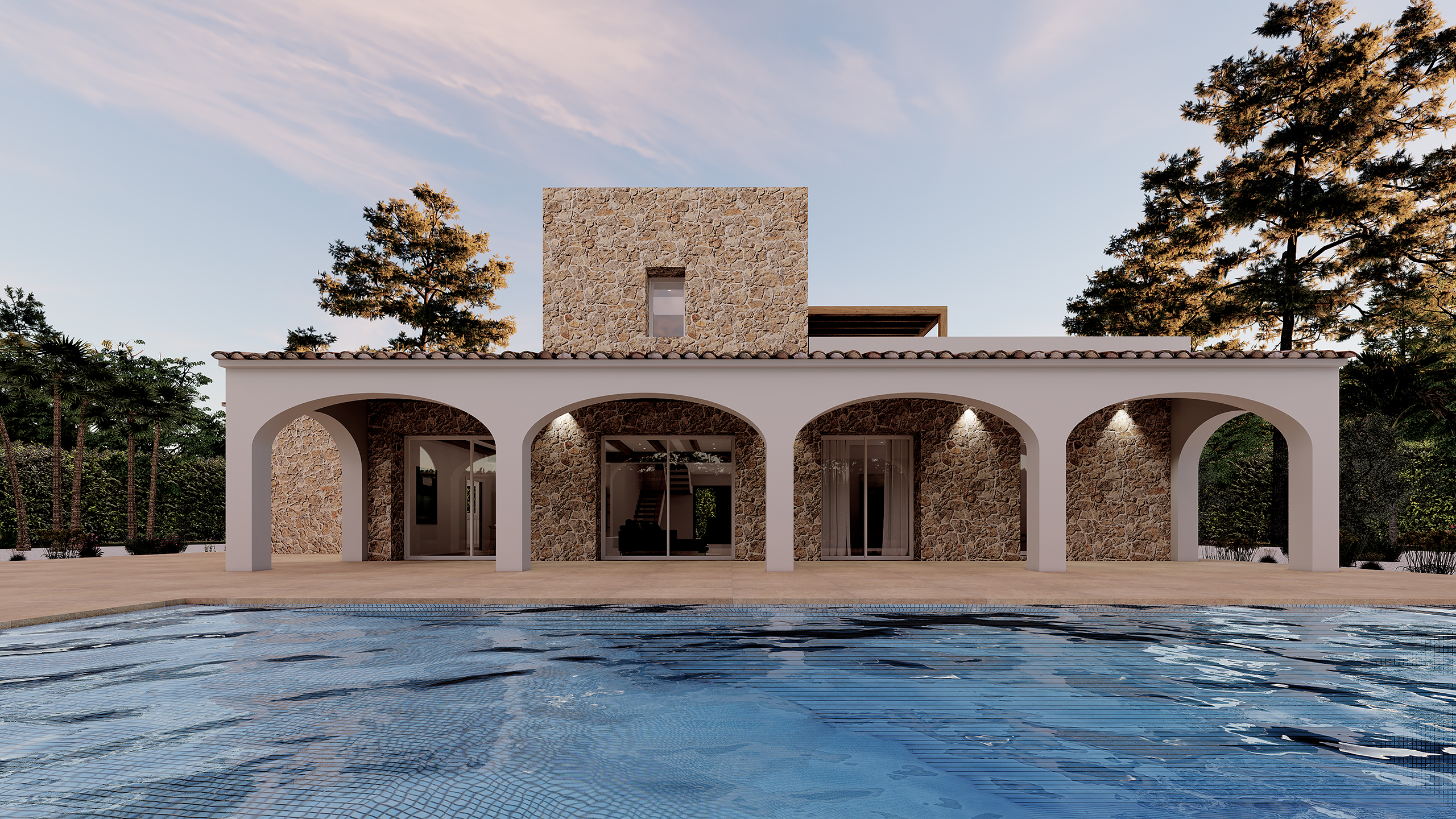 De villa is ontworpen en gerealiseerd door een ontwikkelaar met meer dan 45 jaar ervaring. Het resultaat is een geslaagde combinatie van mediterrane, rustieke charme en moderne architectuur. Natuurlijke materialen, strakke lijnen en royale ruimtes zorgen voor een warme en tijdloze uitstraling.