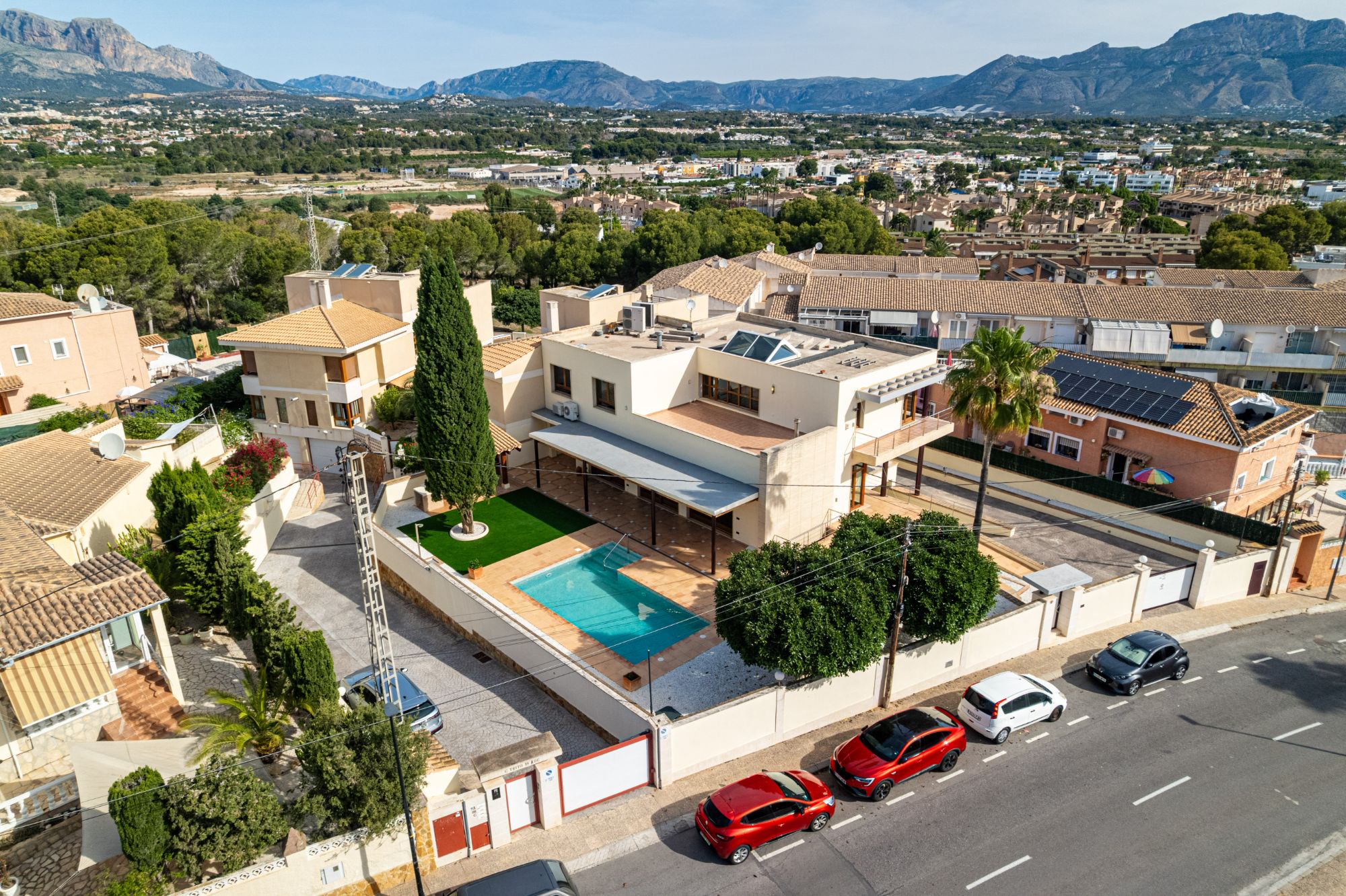 Slechts 200 meter van de hoofdweg en op 8 minuten lopen van het strand, biedt deze unieke woning een zeldzame combinatie van ruimte, design en locatie. Gebouwd in 2009 op een perceel van 962 m² met een totale bebouwde oppervlakte van 537 m², strekt de villa zich over drie verdiepingen uit en is op het oosten gericht, waardoor het prachtige ochtendlicht wordt opgevangen.