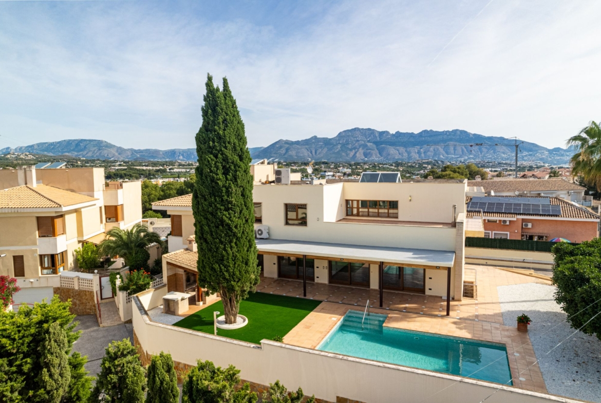 Uitzonderlijke villa met 6 slaapkamers, binnenspa en uitzicht op zee in het hart van Albir