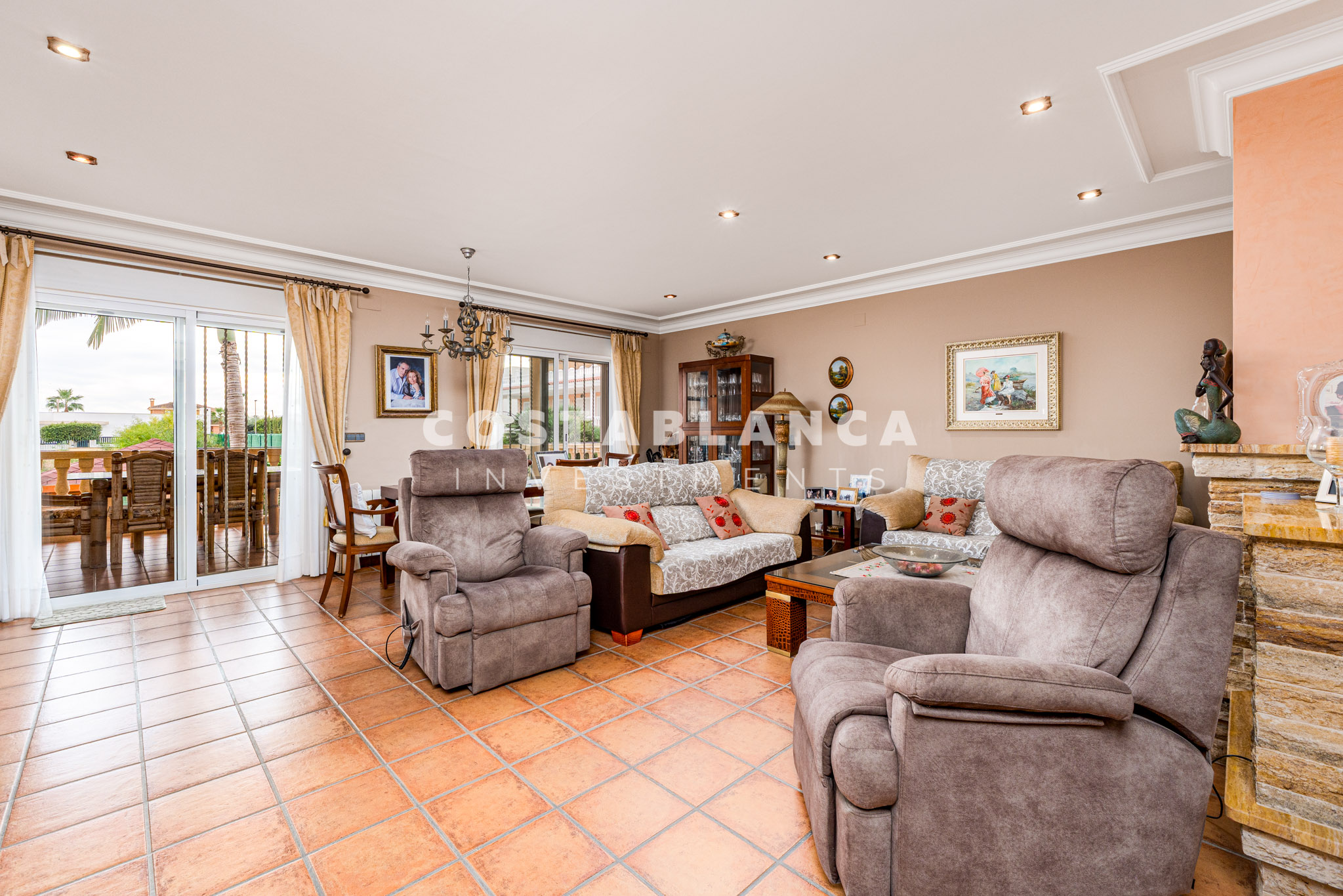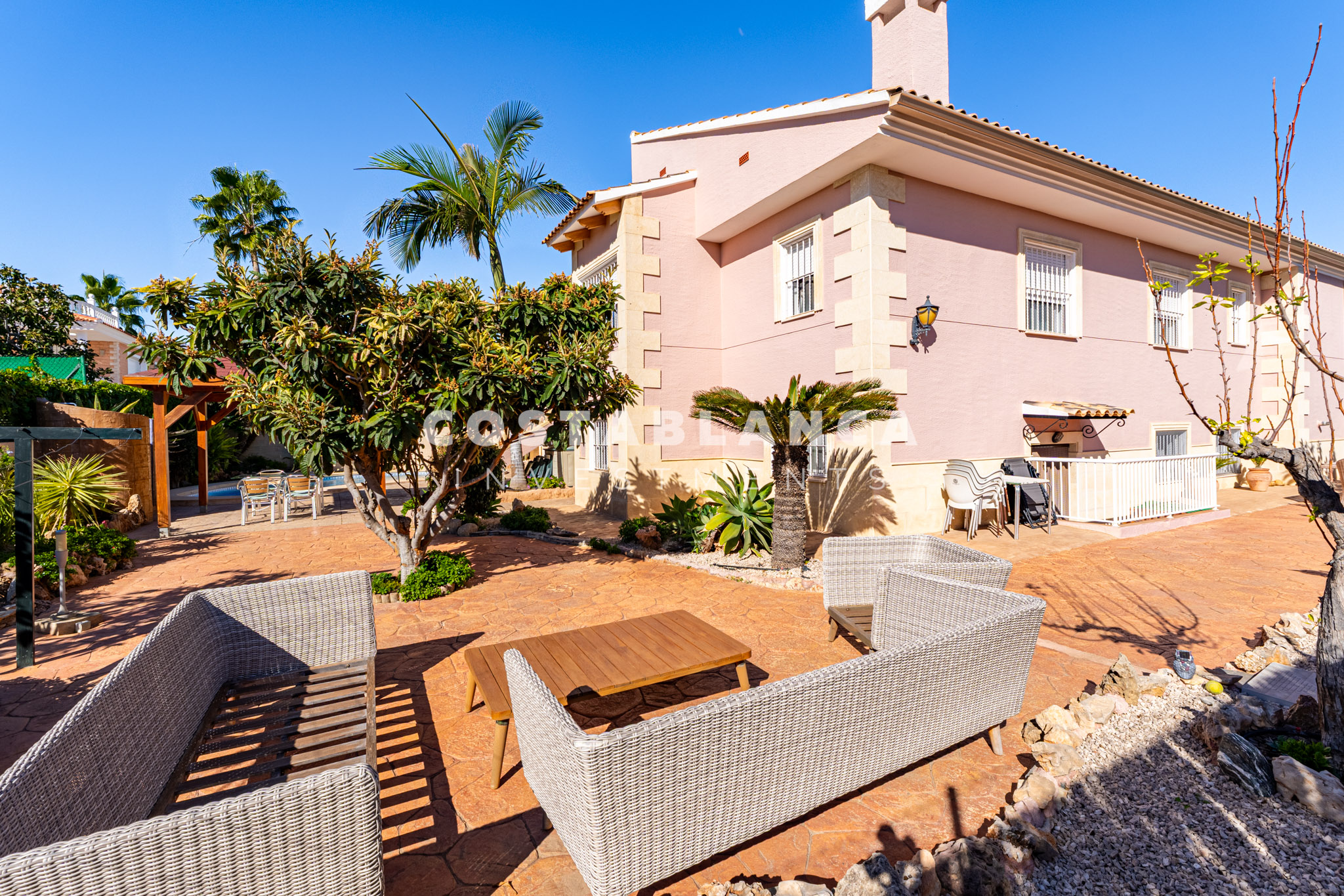 Gelegen op een perceel van 845 m², biedt deze grote villa in Alfaz del Pi 480 m² woonruimte verdeeld over twee comfortabele niveaus. Gebouwd in 2004 en gericht op het zuidoosten, is het pand ontworpen voor ruime gezinswoning, privacy en buitenplezier.