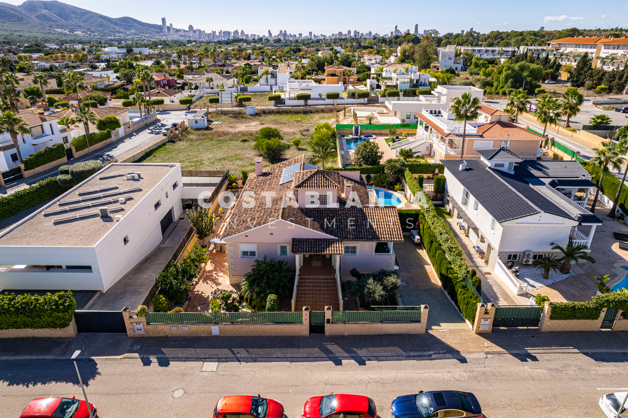 Voor parkeren biedt het pand een gesloten garage voor twee auto’s en aanvullende buitenruimte voor nog eens drie voertuigen. Het profiteert ook van acht zonnepanelen, wat de energieefficiëntie verbetert en de bedrijfskosten verlaagt. De villa wordt volledig gemeubileerd verkocht.