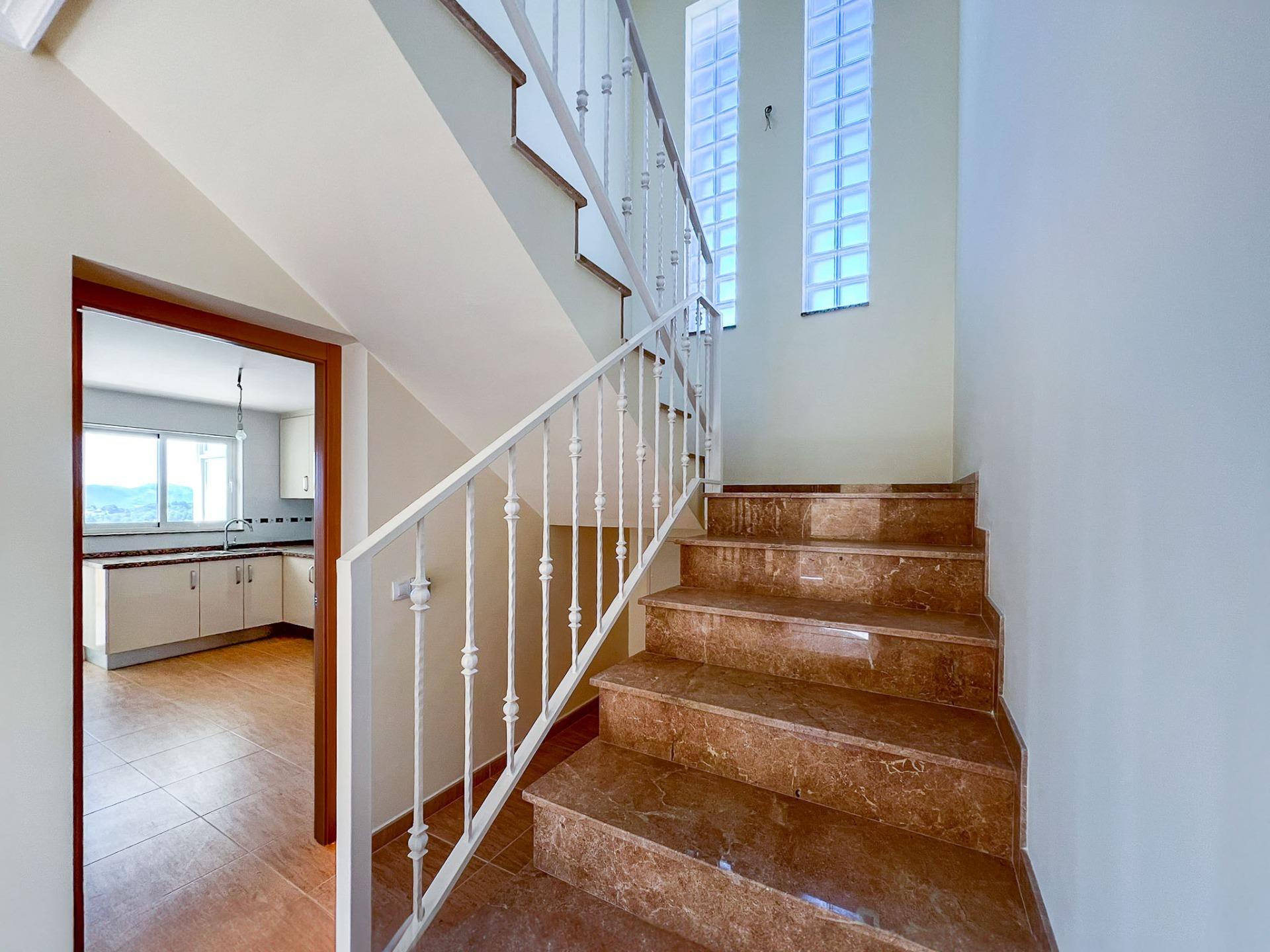 Wij presenteren deze uitzonderlijke vrijstaande villa gelegen in het charmante dorpje Alfaz, dat indrukwekkende vrij uitzicht biedt op de zee en de bergen. Het pand, dat in totaal 248 m2 is gebouwd, waarvan 172 m2 overeenkomt met de woning, is verdeeld over twee verdiepingen plus een semi-kelder, en valt op door zijn lichtheid en ruimte. Op de begane grond vinden we een ruime woonkamer, een aparte keuken verbonden met een overdekt terras dat ideaal is om buiten van te genieten, evenals twee comfortabele slaapkamers voorzien van inbouwkasten en een complete badkamer. Als we naar de eerste verdieping gaan, worden we verwelkomd door een gezellige zitkamer en een grote slaapkamer die toegang geeft tot een schitterend open terras waar u kunt genieten van de prachtige panorama's op de zee en de bergen. De semi-kelder biedt waardevolle extra ruimte voor opslag of mogelijke persoonlijke toepassingen afhankelijk van uw behoeften. Buiten het huis valt ons spectaculaire privézwembad op, perfect om te ontspannen met vrienden of familie; het beschikt ook over een overdekt gebied bestemd voor een barbecue, waardoor elke sociale bijeenkomst onvergetelijke momenten worden. Deze prachtige aanbieding wordt compleet gemaakt met een zeer functionele gesloten garage uitgerust met automatische deuren, die plaats biedt aan maximaal twee voertuigen en het praktische potentieel van het onroerend goed verder vergroot.