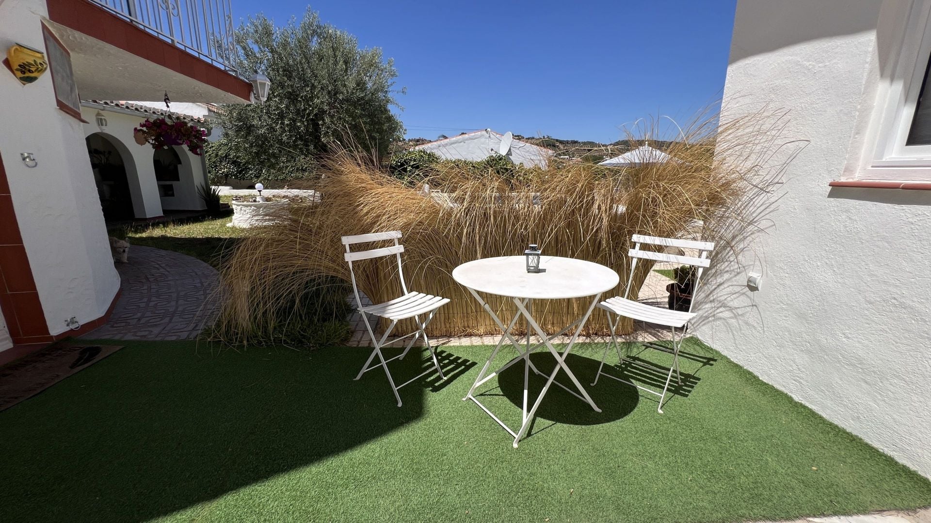 De begane grond is slim ingedeeld met een zelfstandige woonruimte: een slaapkamer, badkamer, keukenhoek en woonkamer, perfect voor gasten of familie. Een aangrenzende overdekte veranda met eetgedeelte biedt een heerlijke plek om buiten te dineren, zelfs tijdens warme zomerdagen. Een grote berging zorgt voor extra opslagruimte.