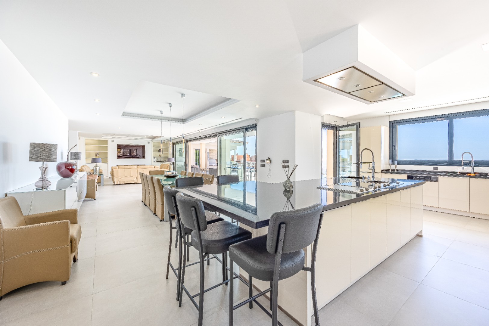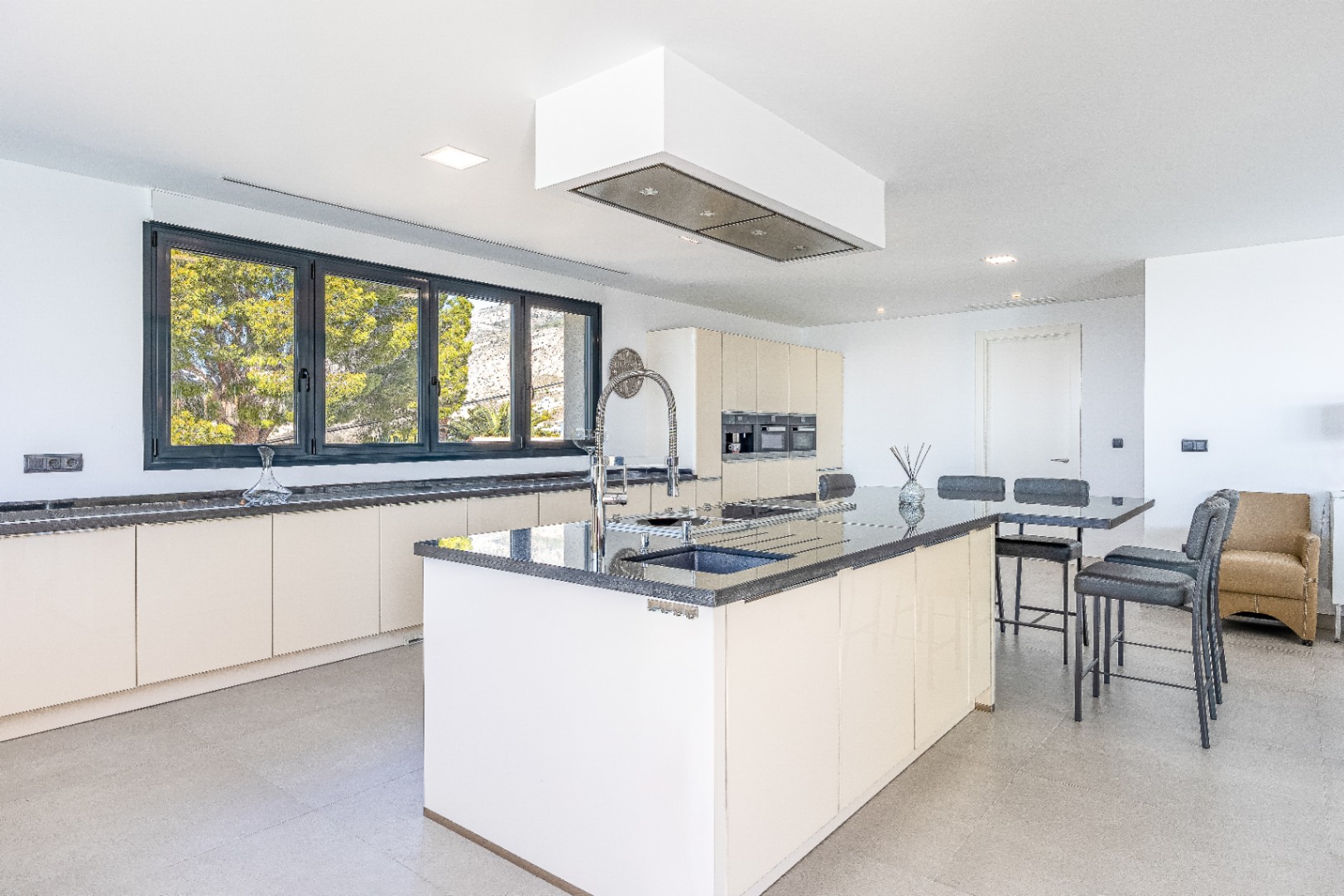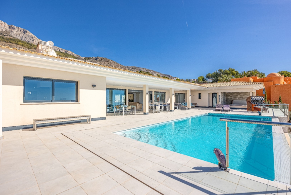 Deze uitzonderlijke villa in moderne stijl gelegen in Altea la Vella, Spanje, biedt een luxe en eigentijdse woonervaring. Met een indrukwekkende bebouwde oppervlakte op een perceel van 1680 m2 waarvan 680 m² nuttig is, combineert dit pand elegantie en functionaliteit tot in elk detail.Bij binnenkomst in de villa wordt u begroet door het licht en de ruimtelijkheid van de wooneetkamer op de eerste verdieping. Deze woonruimte gaat harmonieus samen met een open keuken, waardoor een perfecte omgeving voor entertainment en gezelligheid ontstaat. Op de verdieping bevinden zich ook een volledig uitgeruste wasruimte en een toilet voor extra gemak.De hoofdslaapkamer, gelegen op dezelfde verdieping, is een toevluchtsoord van privacy en luxe. Het heeft een royale oppervlakte, een volledige kleedkamer en een ensuite badkamer met zowel een ligbad als een douche. Vanuit dit toevluchtsoord is er directe toegang tot een prachtig terras, waar zich een ruimte bevindt die speciaal is ontworpen om te genieten van een ontspannende jacuzzi, met panoramische uitzichten die de zintuigen boeien.Als we afdalen naar de begane grond, ontdekken we een ruimte gewijd aan rust en recreatie. Vier gezellige slaapkamers en twee badkamers bieden een comfortabele omgeving voor familie en gasten. Daarnaast beschikt de villa over een extra woonkamer, een speelkamer, een privébioscoop en een wijnkelder, waardoor een eersteklas entertainmentomgeving ontstaat. Voor wijnliefhebbers garandeert een koelcel de perfecte bewaring van hun collecties.De royale garage biedt plaats aan maximaal 5 grote auto's en biedt veilige en gemakkelijke beschutting. Gebouwd in 2017 en onderhouden in uitstekende tweedehands staat, biedt dit pand moderne voorzieningen zoals airconditioning, inbouwkasten en een extra berging.Het juweel van deze villa is de buitenomgeving, waar een prachtige tuin een verfrissend zwembad omringt en een oase van rust en privacy creëert. Het buitenterras is ideaal om buiten te eten of gewoon te ontspannen terwijl u geniet van de schoonheid van de omgeving.Kortom, deze moderne villa in Altea la Vella is een meesterwerk van eigentijds design en uitzonderlijke voorzieningen en biedt een unieke woonervaring aan de Costa Blanca.
