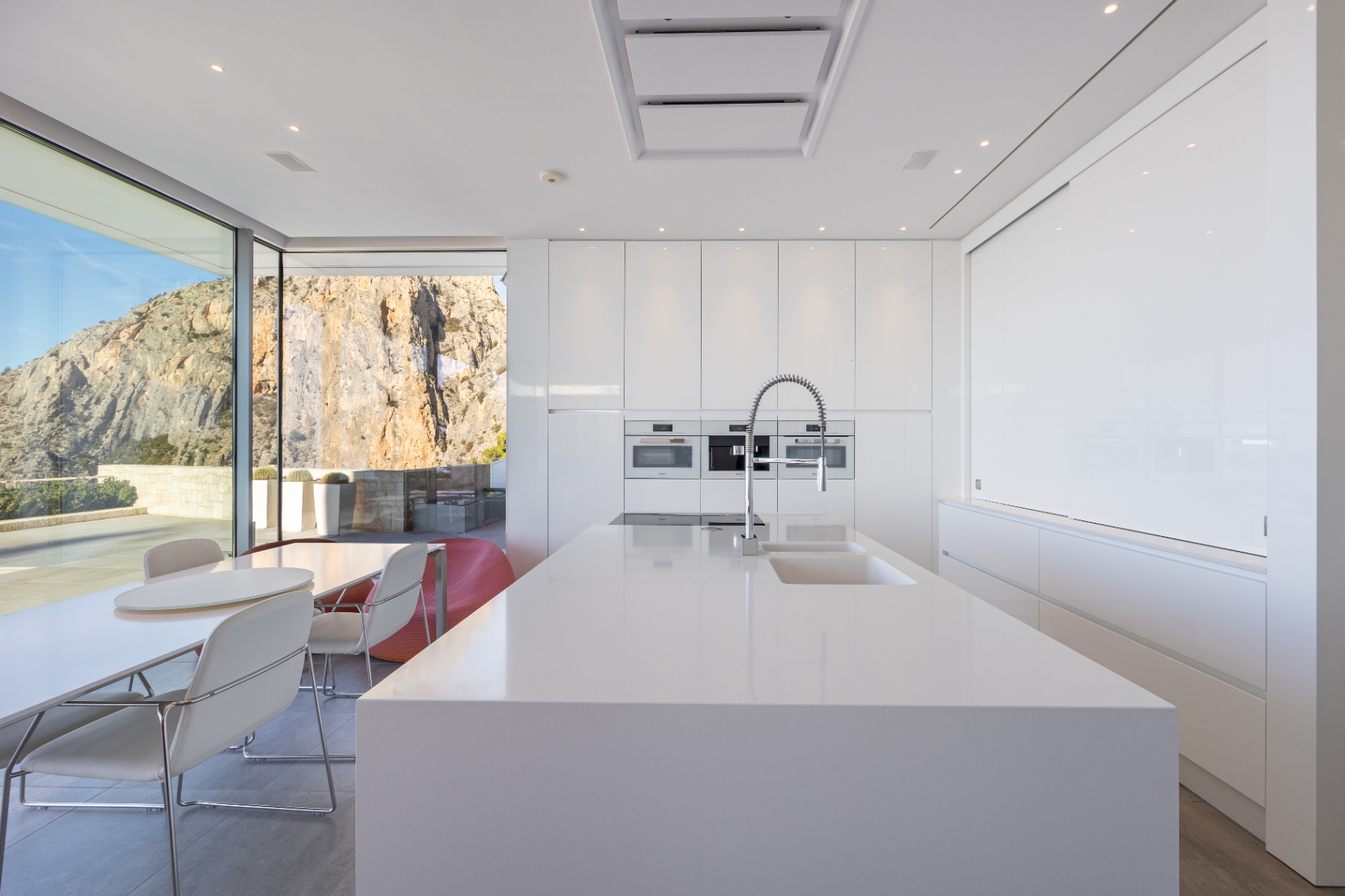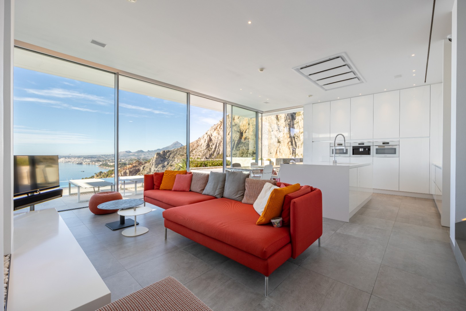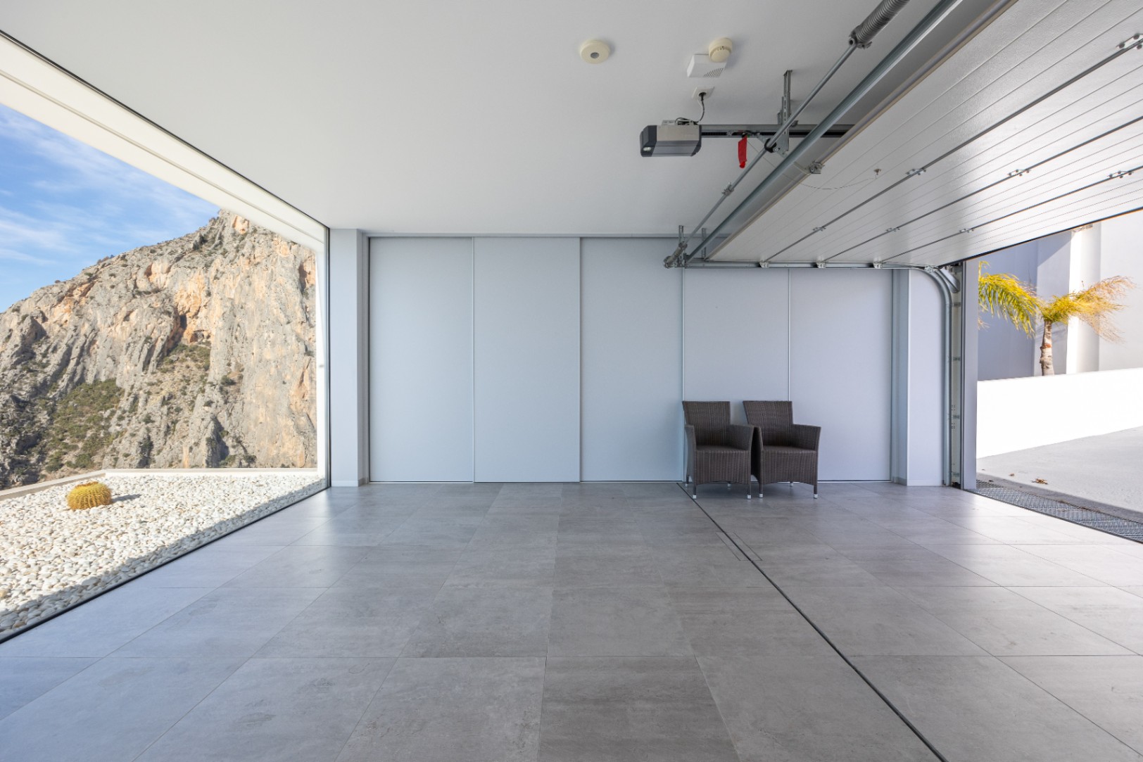 In de hele woning laten hoogwaardige minimalistische ramen adembenemende uitzichten zien, of het nu gaat om de zee, de bergen aan de achterzijde of het boeiende landschap aan de zijkant. Voor extra privacy is het aangrenzende perceel ook te koop.