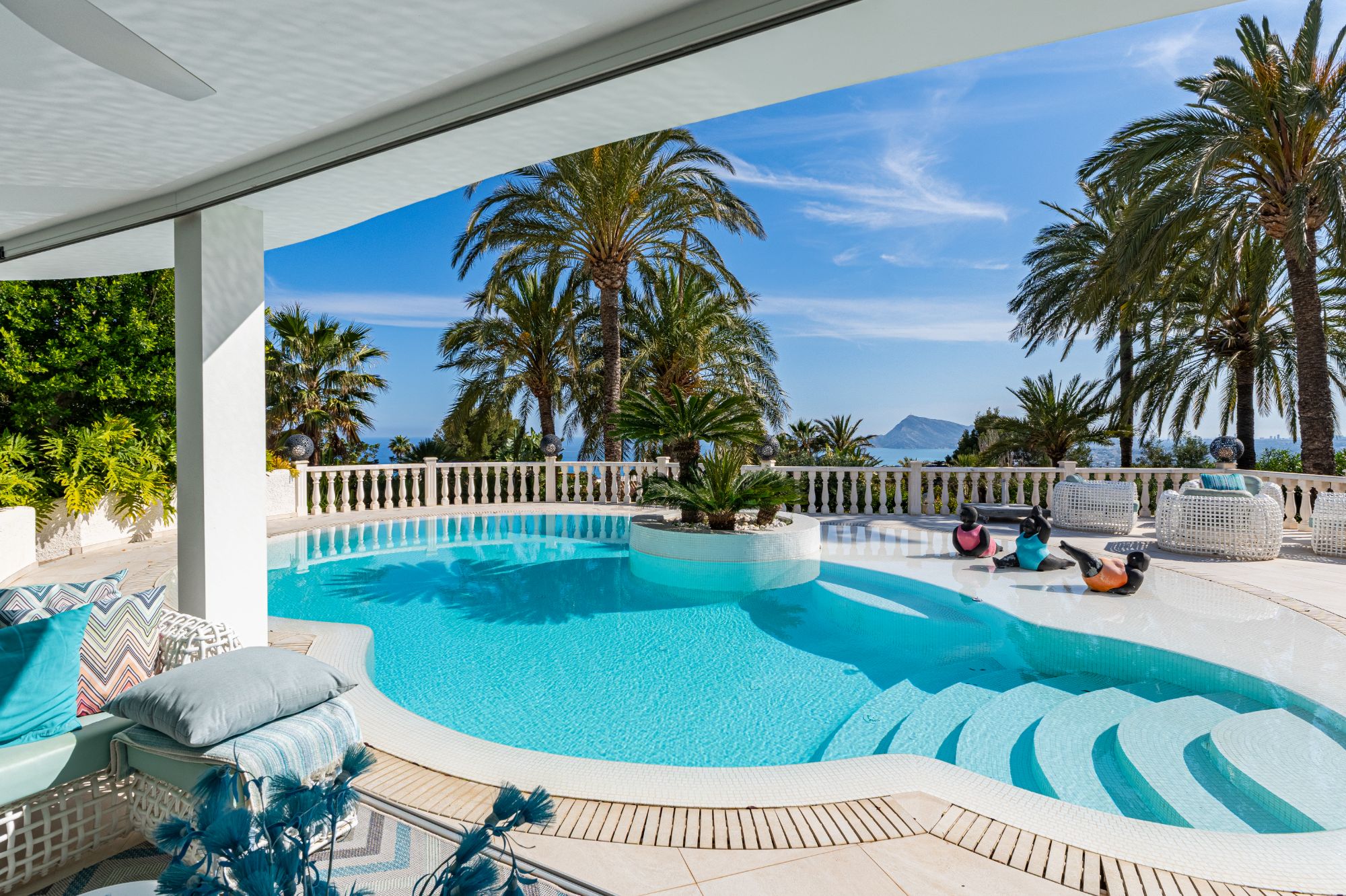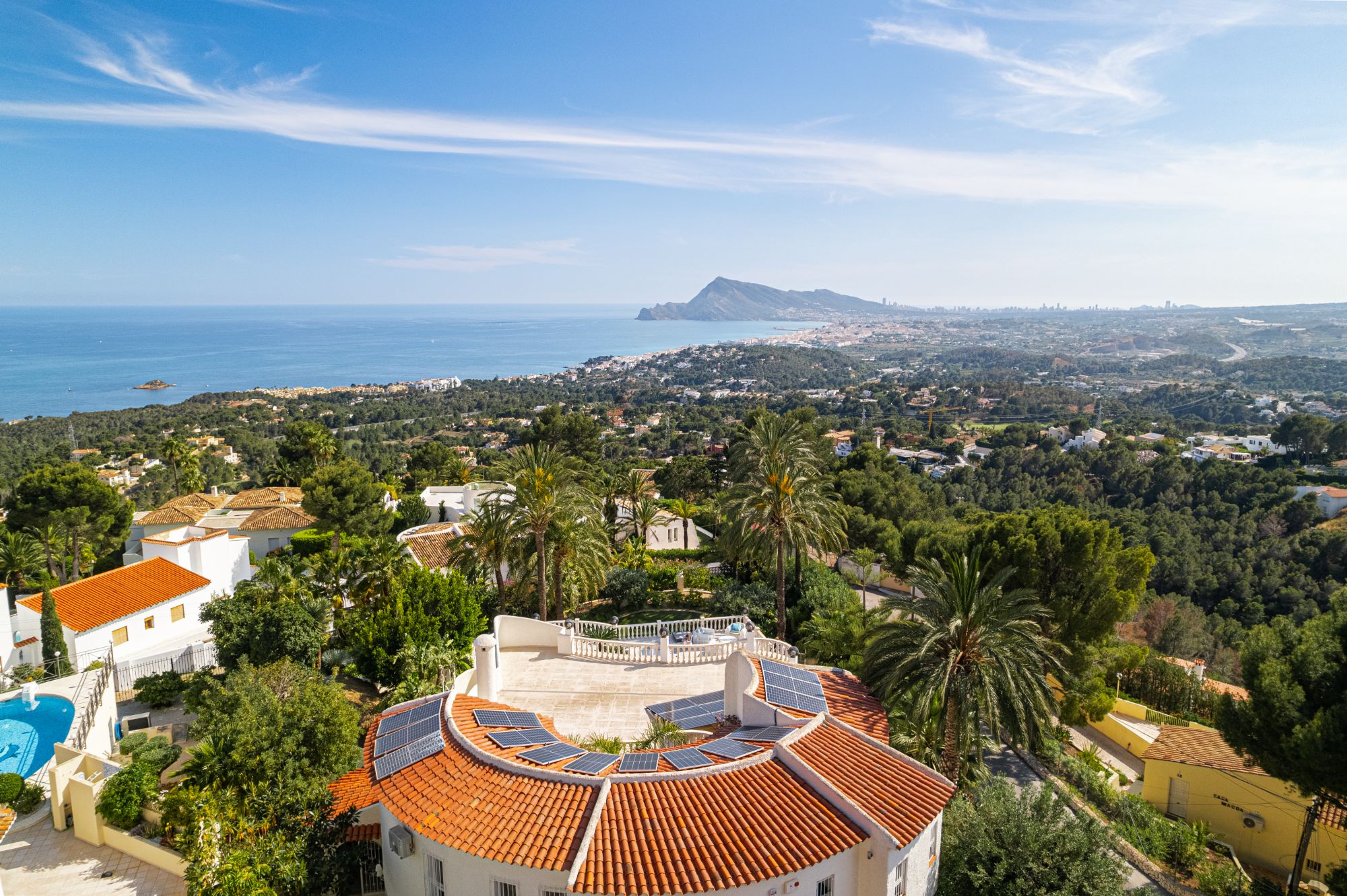 Gelegen in een van de meest prestigieuze woonwijken van de Costa Blanca, biedt deze opmerkelijke villa met vijf slaapkamers een uitzonderlijk niveau van leven, waarbij architectonische elegantie wordt gecombineerd met ongeëvenaarde uitzichten over de zee en de bergen. Gevestigd in de gewilde enclave van Sierra Altea, bezet het pand een dominante positie op een perceel van 1.472 m², wat zowel privacy als panoramische uitzichten op het mediterrane landschap garandeert.
