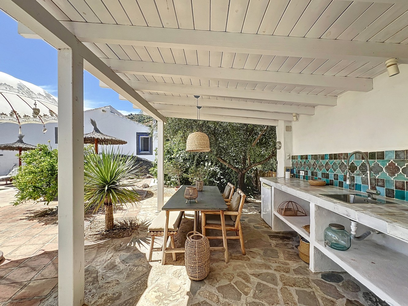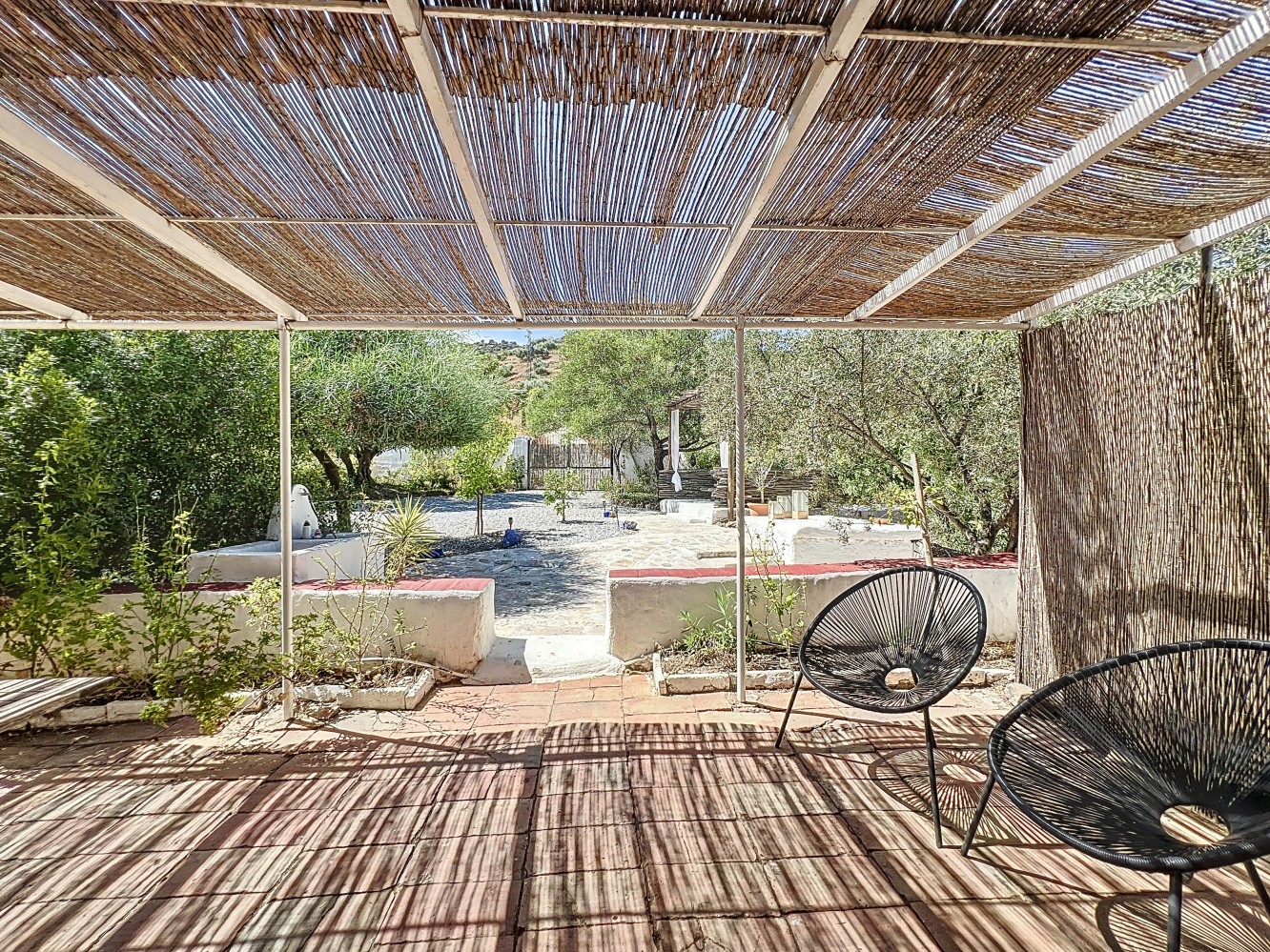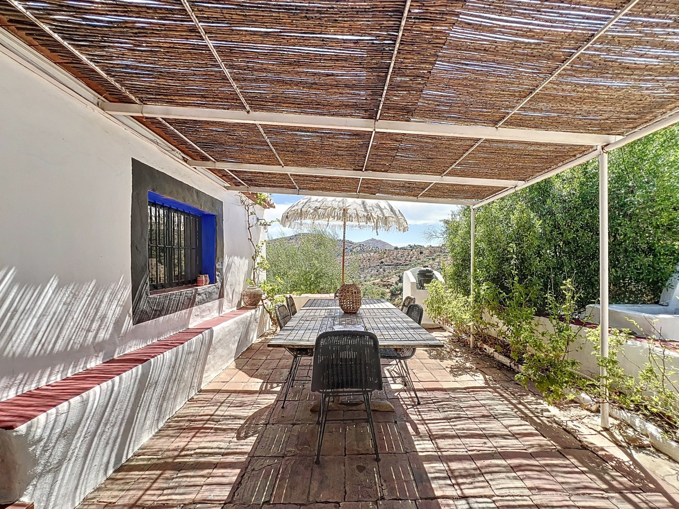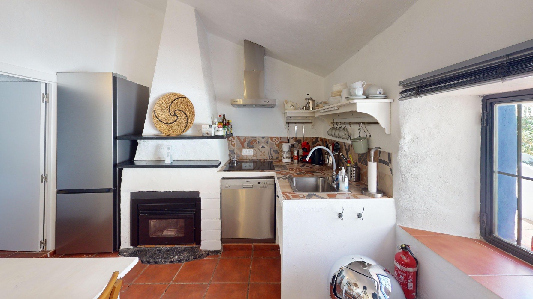 Gelegen in de heuvels van Arenas, Málaga, is deze betoverende cortijo veel meer dan een huis het is een mediterraan toevluchtsoord vol karakter, rust en mogelijkheden. Verdeeld in drie aparte appartementen is het ideaal voor gebruik als charmante B&B of als ruim familieverblijf. Flexibel, comfortabel en vol ziel. Het hoofdappartement beschikt over twee slaapkamers en twee stijlvolle badkamers, elk met inloopdouche, marmeren wastafels en zorgvuldig gekozen tegels. De open leefruimte straalt warmte uit dankzij de terracottavloeren, een zachte grijze bank, rotan accenten en een kristallen kroonluchter. De keuken is praktisch én mooi, met witte kasten, kleurrijke tegels en moderne apparatuur zoals een oven en vaatwasser. Het tweede appartement is een knusse en lichte eenheid met één slaapkamer. Klein van formaat, maar met alles wat je nodig hebt: een kitchenette, een elegante badkamer met tropische bladtegels, en sfeervolle details zoals kroonluchters en decoratieve spiegels. Natuurlijk materialen zoals rotan en terracotta geven het geheel een warme uitstraling. Het derde appartement heeft een slaapkamer, badkamer, kantoor, keuken en woonkamer. Witte muren, een open haard en grote ramen geven een frisse, lichte sfeer, terwijl rode keukenkastjes en rustieke meubels zorgen voor persoonlijkheid. Elk vertrek is met zorg ingericht met handgemaakte elementen en unieke verlichting. Maar het is de buitenruimte die deze plek echt bijzonder maakt. Omringd door een prachtig berglandschap, vind je overal charmante plekjes: natuurstenen vloeren, schaduwrijke terrassen, verborgen zithoekjes, een daybed voor een middagdutje en een zwembad met helder turquoise water. De overdekte buitenkeuken is een pareltje, met handgemaakte tegels en een ambachtelijk werkblad een weerspiegeling van de liefde en aandacht die in elk detail zit. Deze cortijo ademt karakter een perfecte plek voor een nieuwe levensfase of een bijzonder B&B-project in Andalusië.