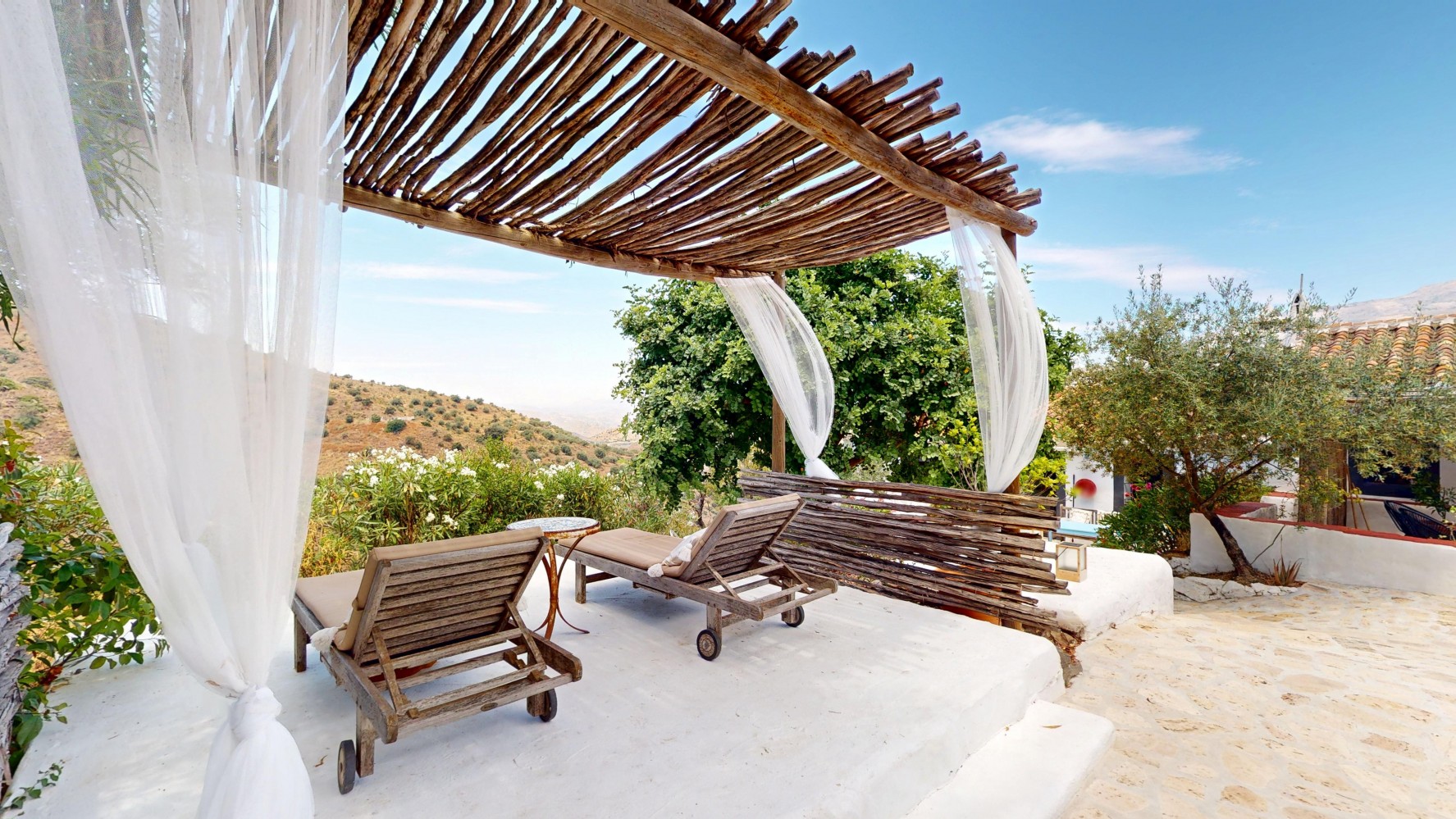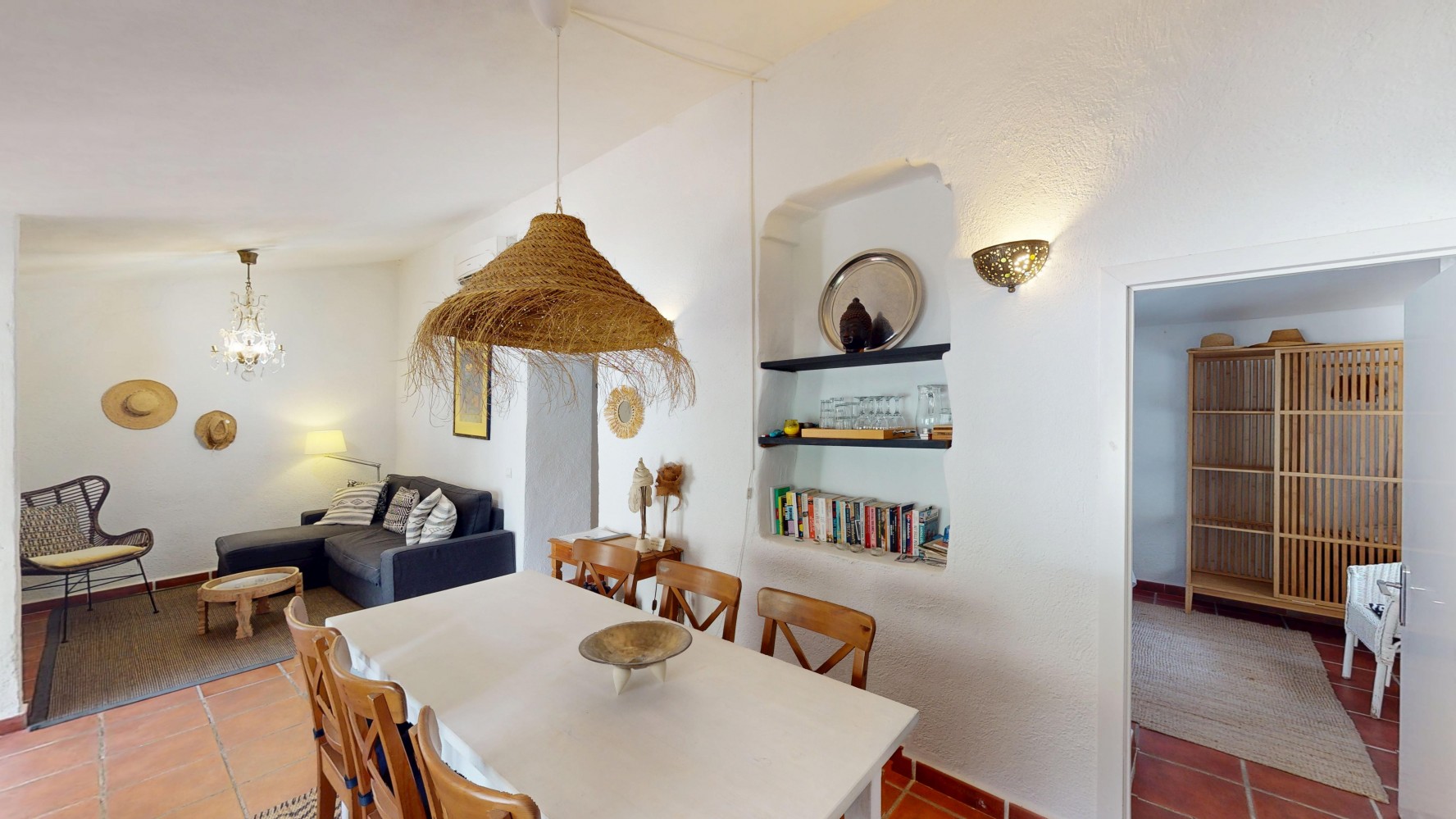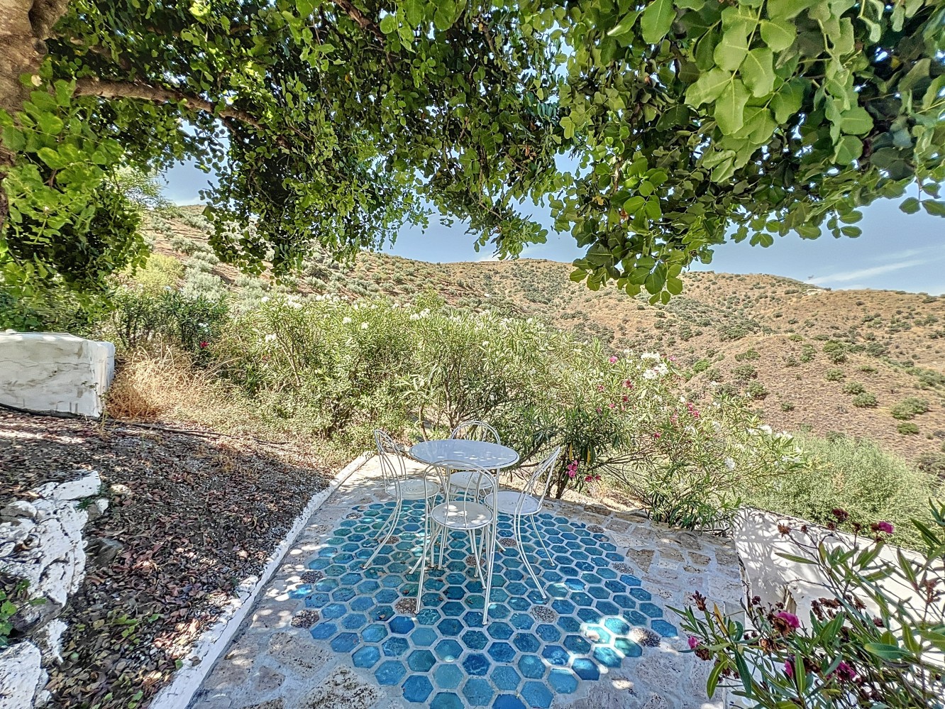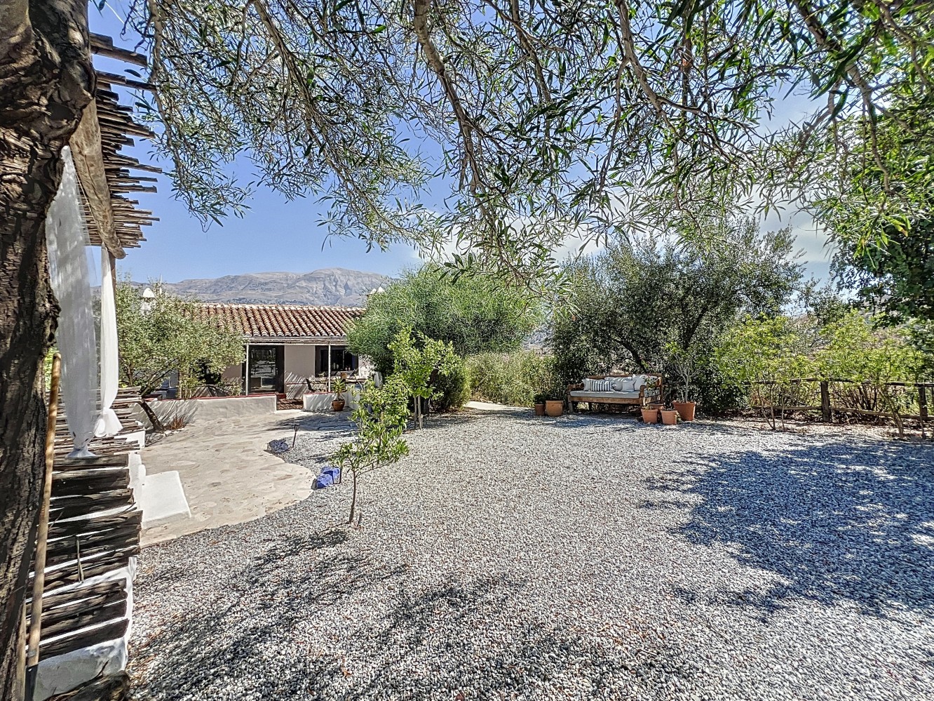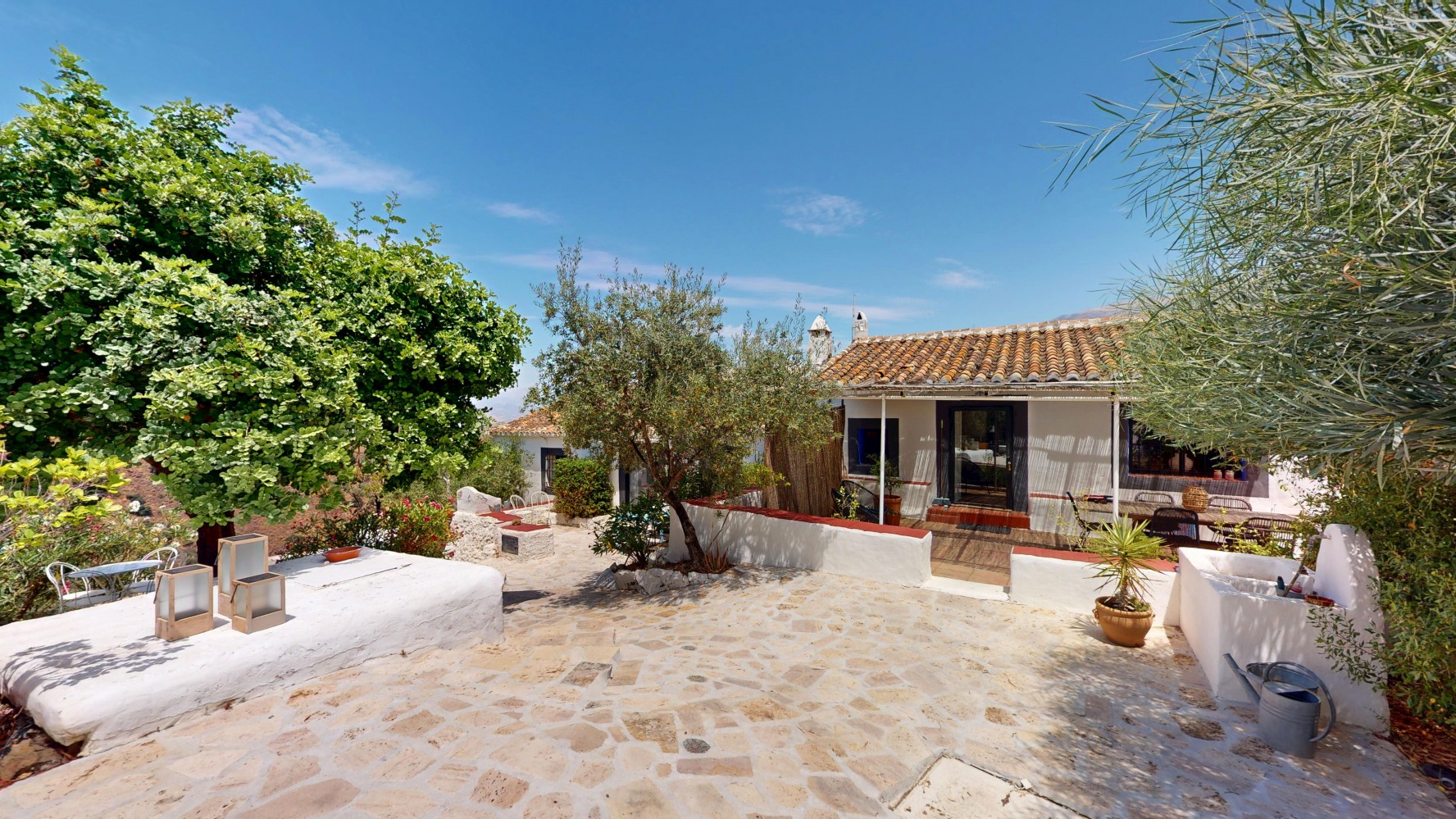 Gelegen in de heuvels van Arenas, Málaga, is deze betoverende cortijo veel meer dan een huis het is een mediterraan toevluchtsoord vol karakter, rust en mogelijkheden. Verdeeld in drie aparte appartementen is het ideaal voor gebruik als charmante B&B of als ruim familieverblijf. Flexibel, comfortabel en vol ziel. Het hoofdappartement beschikt over twee slaapkamers en twee stijlvolle badkamers, elk met inloopdouche, marmeren wastafels en zorgvuldig gekozen tegels. De open leefruimte straalt warmte uit dankzij de terracottavloeren, een zachte grijze bank, rotan accenten en een kristallen kroonluchter. De keuken is praktisch én mooi, met witte kasten, kleurrijke tegels en moderne apparatuur zoals een oven en vaatwasser. Het tweede appartement is een knusse en lichte eenheid met één slaapkamer. Klein van formaat, maar met alles wat je nodig hebt: een kitchenette, een elegante badkamer met tropische bladtegels, en sfeervolle details zoals kroonluchters en decoratieve spiegels. Natuurlijk materialen zoals rotan en terracotta geven het geheel een warme uitstraling. Het derde appartement heeft een slaapkamer, badkamer, kantoor, keuken en woonkamer. Witte muren, een open haard en grote ramen geven een frisse, lichte sfeer, terwijl rode keukenkastjes en rustieke meubels zorgen voor persoonlijkheid. Elk vertrek is met zorg ingericht met handgemaakte elementen en unieke verlichting. Maar het is de buitenruimte die deze plek echt bijzonder maakt. Omringd door een prachtig berglandschap, vind je overal charmante plekjes: natuurstenen vloeren, schaduwrijke terrassen, verborgen zithoekjes, een daybed voor een middagdutje en een zwembad met helder turquoise water. De overdekte buitenkeuken is een pareltje, met handgemaakte tegels en een ambachtelijk werkblad een weerspiegeling van de liefde en aandacht die in elk detail zit. Deze cortijo ademt karakter een perfecte plek voor een nieuwe levensfase of een bijzonder B&B-project in Andalusië.
