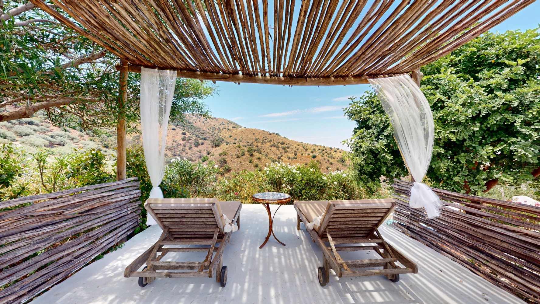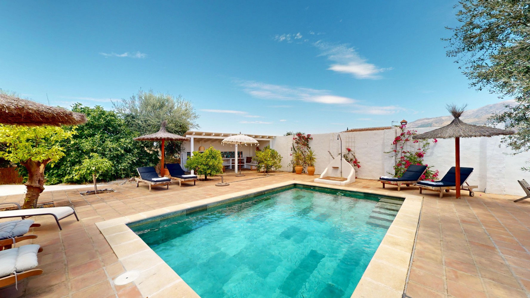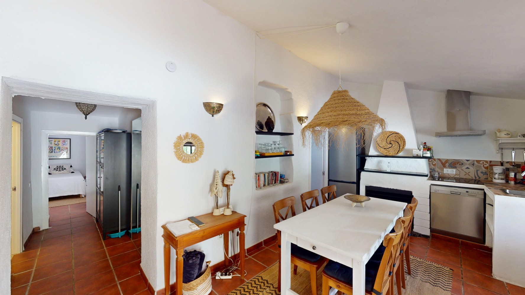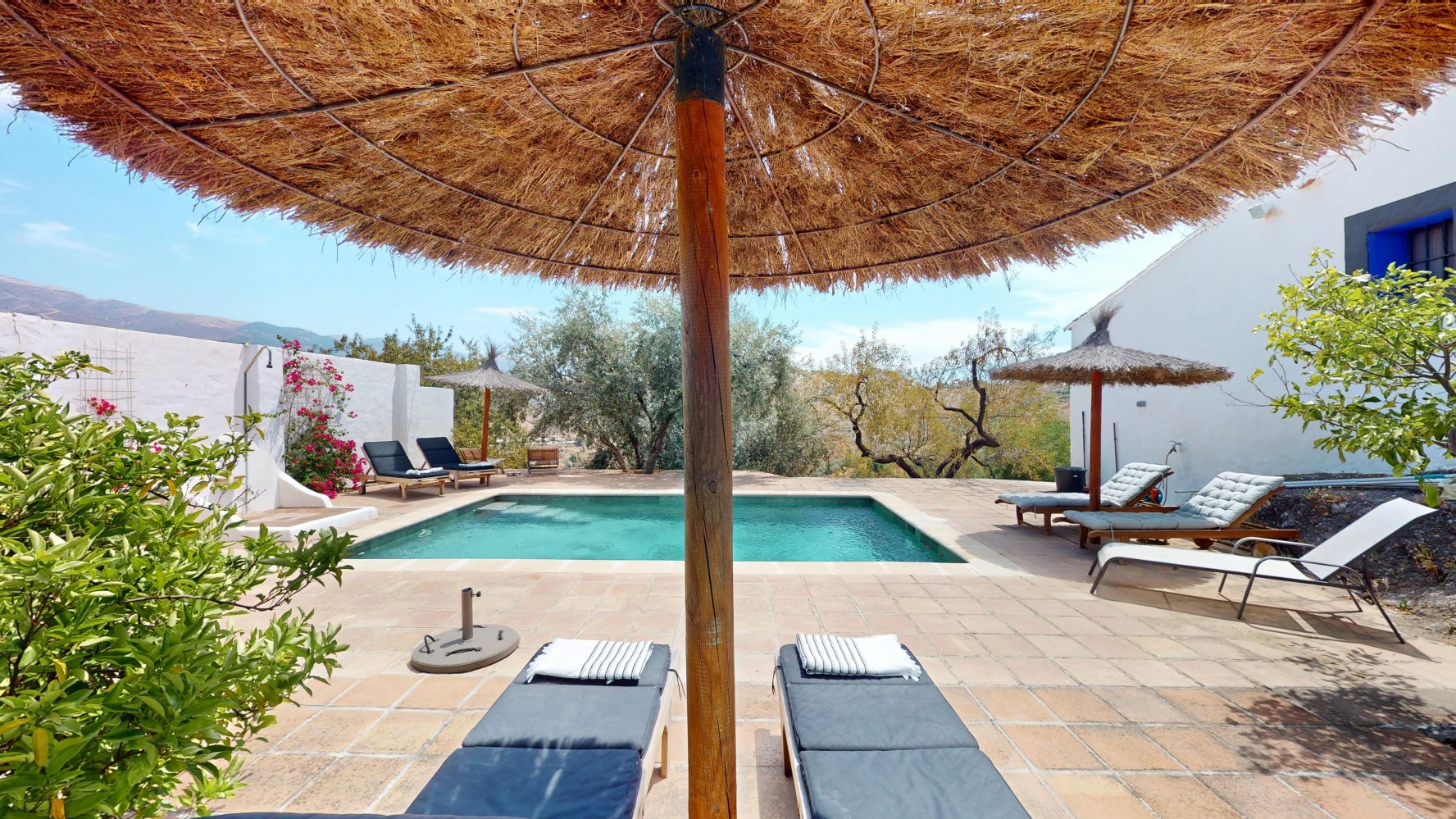 Gelegen in de heuvels van Arenas, Málaga, is deze betoverende cortijo veel meer dan een huis het is een mediterraan toevluchtsoord vol karakter, rust en mogelijkheden. Verdeeld in drie aparte appartementen is het ideaal voor gebruik als charmante B&B of als ruim familieverblijf. Flexibel, comfortabel en vol ziel. Het hoofdappartement beschikt over twee slaapkamers en twee stijlvolle badkamers, elk met inloopdouche, marmeren wastafels en zorgvuldig gekozen tegels. De open leefruimte straalt warmte uit dankzij de terracottavloeren, een zachte grijze bank, rotan accenten en een kristallen kroonluchter. De keuken is praktisch én mooi, met witte kasten, kleurrijke tegels en moderne apparatuur zoals een oven en vaatwasser. Het tweede appartement is een knusse en lichte eenheid met één slaapkamer. Klein van formaat, maar met alles wat je nodig hebt: een kitchenette, een elegante badkamer met tropische bladtegels, en sfeervolle details zoals kroonluchters en decoratieve spiegels. Natuurlijk materialen zoals rotan en terracotta geven het geheel een warme uitstraling. Het derde appartement heeft een slaapkamer, badkamer, kantoor, keuken en woonkamer. Witte muren, een open haard en grote ramen geven een frisse, lichte sfeer, terwijl rode keukenkastjes en rustieke meubels zorgen voor persoonlijkheid. Elk vertrek is met zorg ingericht met handgemaakte elementen en unieke verlichting. Maar het is de buitenruimte die deze plek echt bijzonder maakt. Omringd door een prachtig berglandschap, vind je overal charmante plekjes: natuurstenen vloeren, schaduwrijke terrassen, verborgen zithoekjes, een daybed voor een middagdutje en een zwembad met helder turquoise water. De overdekte buitenkeuken is een pareltje, met handgemaakte tegels en een ambachtelijk werkblad een weerspiegeling van de liefde en aandacht die in elk detail zit. Deze cortijo ademt karakter een perfecte plek voor een nieuwe levensfase of een bijzonder B&B-project in Andalusië.