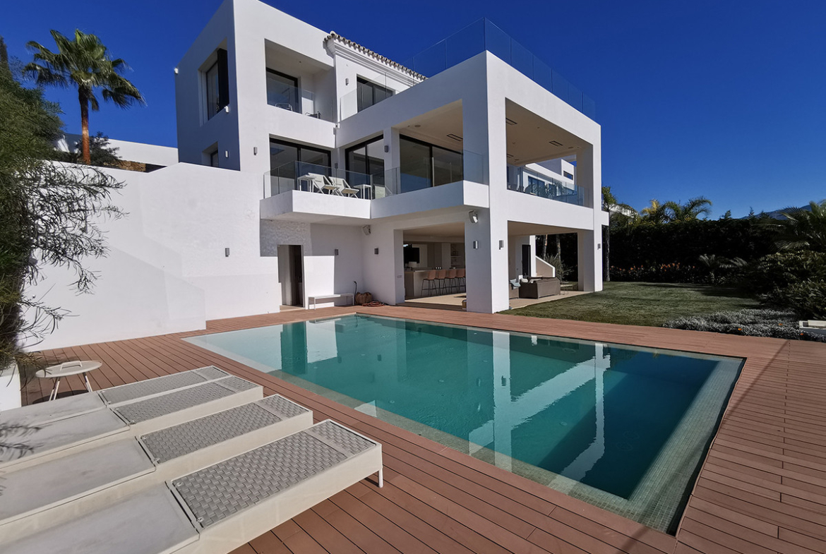 Villa te koop in Benahavis, met 5 slaapkamers, 5 badkamers, 2 toiletten en een zuidelijke ligging, met privézwembad. De woning heeft een bebouwde oppervlakte van 547 m², een perceel van 2.000 m² en een terras van 189 m². De villa beschikt over de volgende faciliteiten: een volledig ingerichte keuken, bijkeuken, open haard, gastenkamer, berging, alarm, dubbele beglazing, video-ingang, eetkamer, gastentoilet, privéterras, woonkamer, watertank, zeezicht, bergzicht, uitzicht op de golfbaan, verwarmd zwembad, automatisch irrigatiesysteem, bars, wasruimte, internet - wifi, overdekt terras, panoramisch uitzicht, stoombad, dichtbij zee/strand, dichtbij golfbaan, onoverdekt terras, glazen deuren, open keuken, optioneel meubilair, uitstekende staat, zoutwaterzwembad, dichtbij winkels, dichtbij de stad, dichtbij scholen, bewakingscamera's en gelegen in een golfresort.