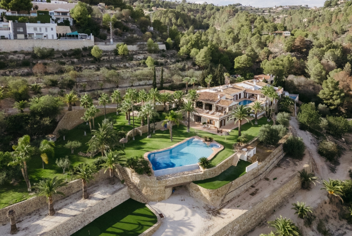 Dit indrukwekkende luxueuze landhuis is gelegen in de prestigieuze urbanisatie El Magraner, op slechts 2,4 km van het La Fusterastrand, en biedt panoramisch zeezicht en totale privacy. Omgeven door natuur geniet het pand van absolute rust in een doodlopende straat, terwijl het slechts een korte rit verwijderd is van de bruisende steden Moraira en Calpe, die beide een breed scala aan winkels, restaurants en recreatieve activiteiten bieden.