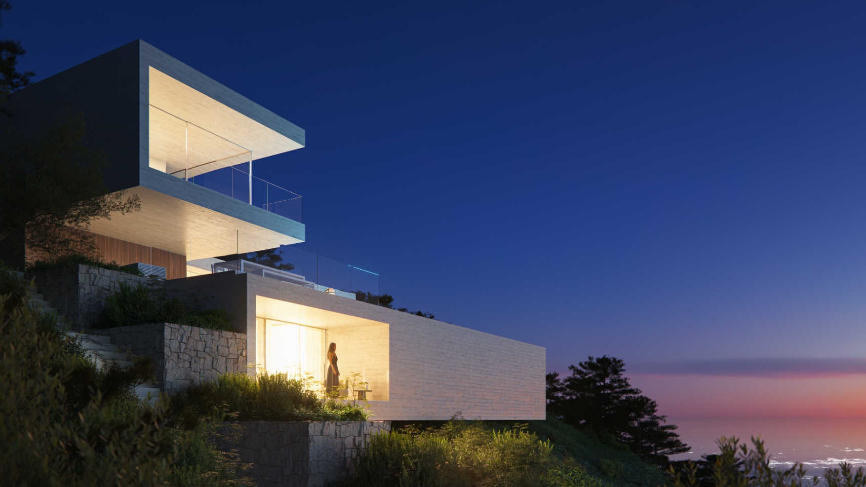 Moderne nieuwbouwvilla voltooid in 2025, gelegen op een perceel van 964 m² met 548 m² gebouwd oppervlakte verdeeld over vier verdiepingen. Op het zuiden gericht met een prachtig uitzicht op zee en bergen, biedt deze woning een perfecte combinatie van licht, ruimte en privacy.