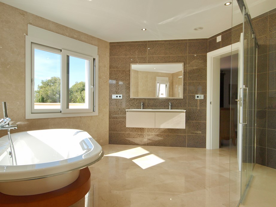 Op de bovenverdieping bevindt zich de master bedroom met inloopkast, en-suite badkamer en een privéterras met prachtig zeezicht. De villa heeft daarnaast een kelder met wasruimte, watertank, ontkalker en bergruimte.