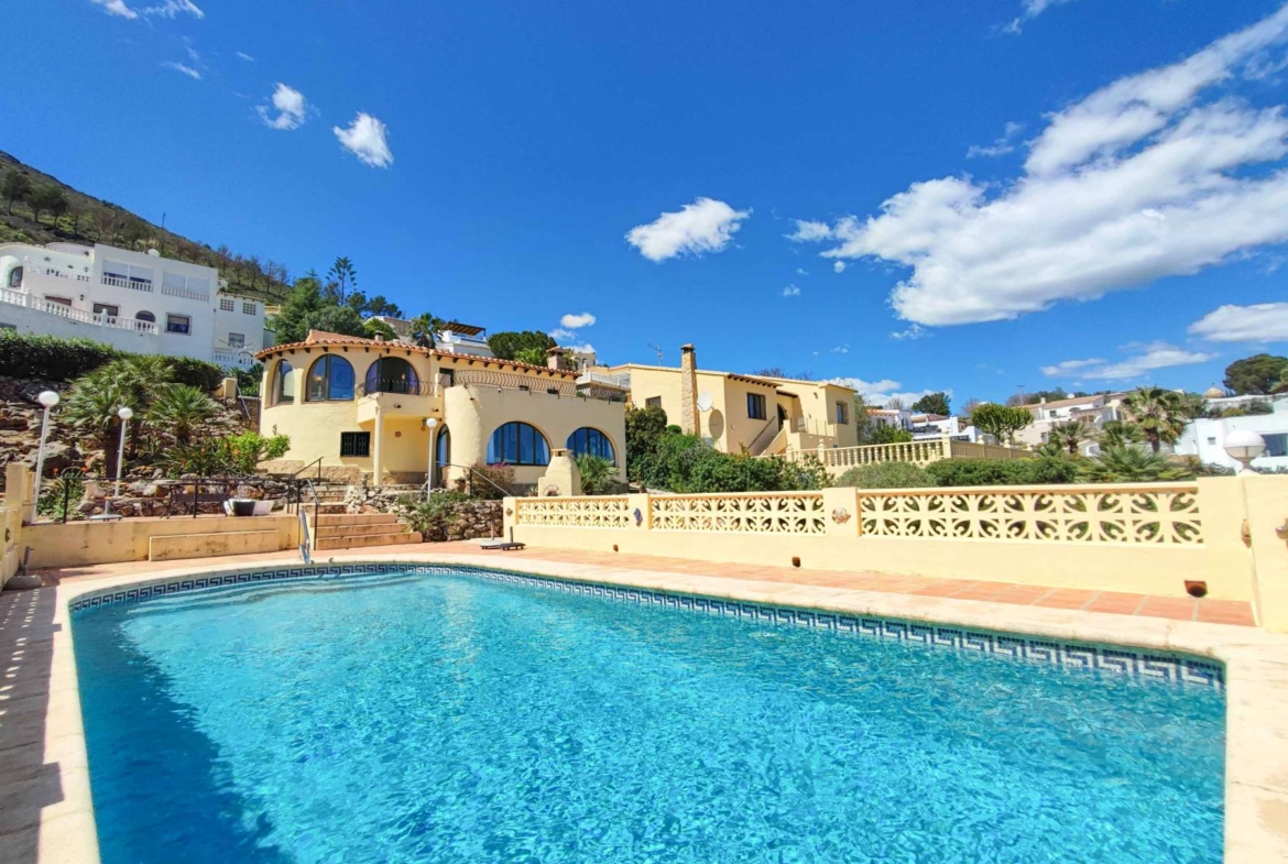 Deze charmante villa in mediterrane stijl in El Benitachell biedt een spectaculair panoramisch uitzicht op de zee en de baai, op korte afstand van de prestigieuze Lady Elizabeth School.