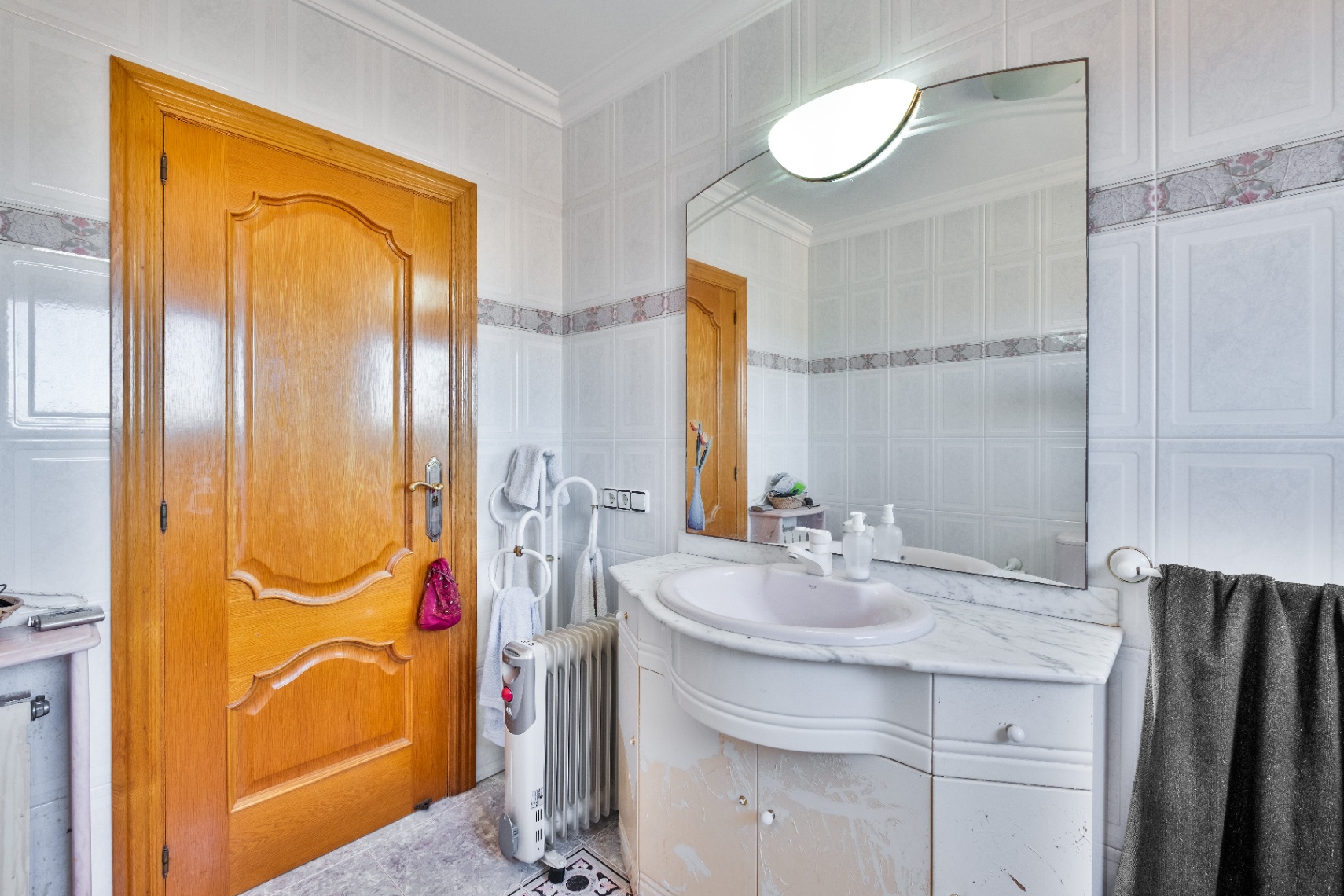 Op de benedenverdieping, met een eigen privéingang, bevindt zich een onafhankelijk appartement met twee slaapkamers, een badkamer, een woonkamer en een keuken. De woning biedt ook een overdekte garage voor één auto en voldoende buitenruimte om minstens vijf extra voertuigen te parkeren.