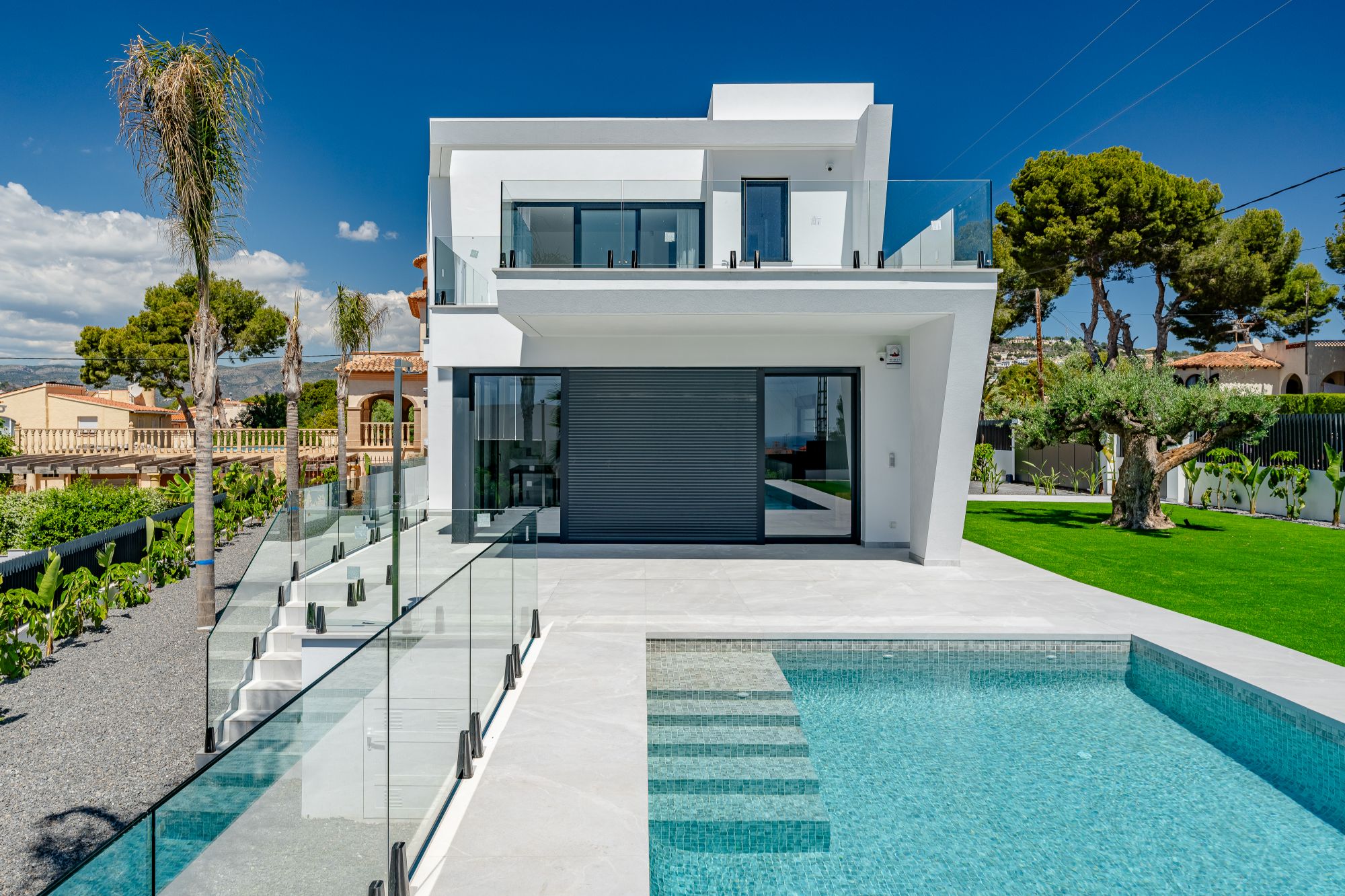 Deze elegante villa in Calpe beslaat twee verdiepingen en biedt een verfijnde indeling die is gevuld met natuurlijk licht en doordacht ontwerp. De begane grond beschikt over een ruime woon en eetkamer, een moderne keuken, een slaapkamer en een complete badkamer. Directe toegang van de garage naar het huis voegt een laag van gemak toe, terwijl de overdekte terras en het zwembadgebied op het zuiden zijn gericht, waardoor het meeste uit de Mediterrane zon wordt gehaald.