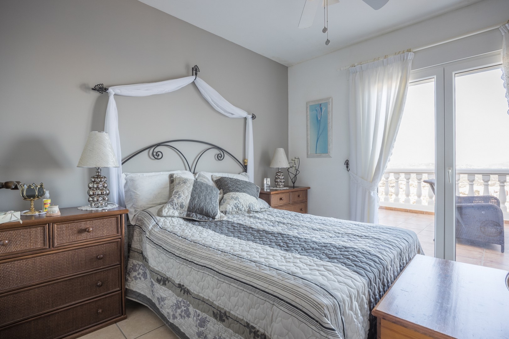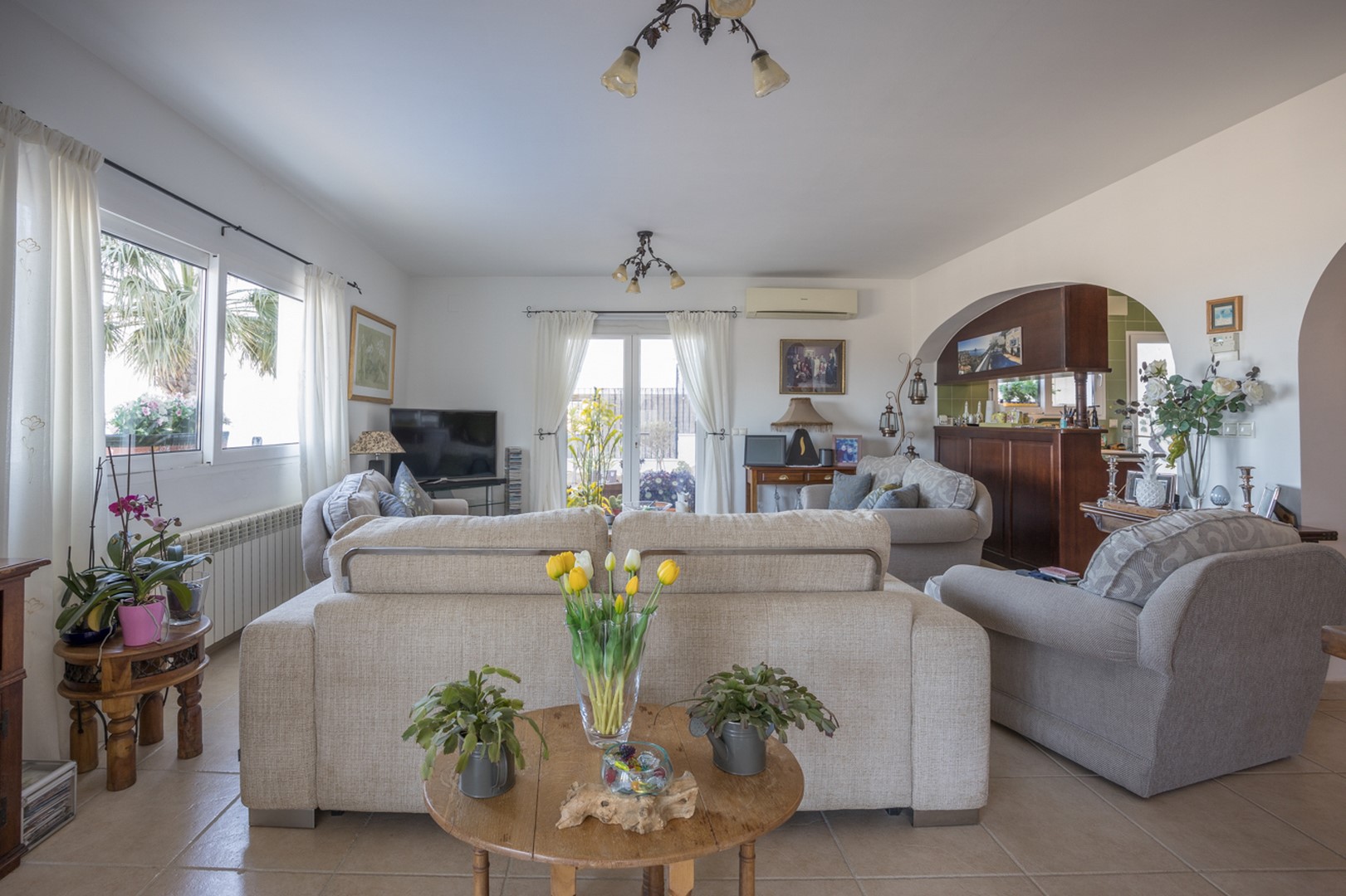 Villa for sale in Mayvilla Calpe with wide sea views.A charming villa boasting panoramic views of both the sea and mountains in Calpe. This detached colonial-style home is located in the sought-after Canuta Maryvilla area. Comprising two floors, the villa features four spacious bedrooms and three bathrooms for optimal convenience. The first floor features three bedrooms and two bathrooms, each with access to a large balcony terrace. Descend to the ground floor to discover a spacious living room with an integrated American kitchen and dining area, and an additional guest bedroom and bathroom. The kitchen connects to a sizable terrace with a barbecue, perfect for outdoor entertaining.