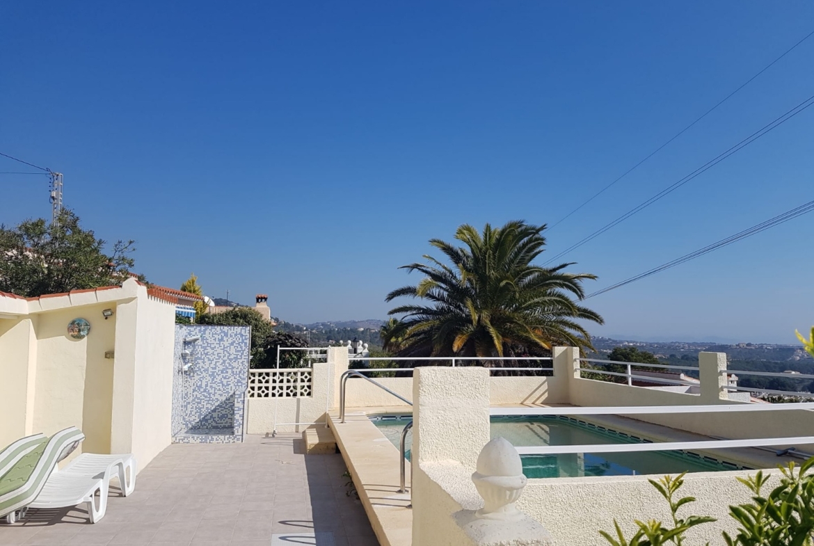 Villa for sale in Calpe with 2 independent homes, swimming pool and sea views This villa for sale in Calpe, Costa Blanca offers an excellent opportunity for those looking for a spacious home with investment potential and a comfortable layout for family use. Situated on a plot of approximately 1,480 m², the villa has two completely independent floors, each with its own entrance. Description The villa is spread over two floors. Ground floor: 2 bedrooms, bathroom, fully equipped kitchen with separate storage room, bright living room and an enclosed terrace that can be used all year round. Upper floor (access via external staircase): 2 bedrooms, bathroom, separate kitchen, living room and a glass terrace with panoramic views of the sea and mountains. The outdoor area consists of a private swimming pool with sun terrace, barbecue area, (covered) parking space and additional parking space on site. The location is south-east facing, which ensures plenty of sun. Special features Large, flat plot4 bedrooms and 2 bathroomsTwo completely independent living unitsPrivate swimming pool and spacious terracesSea and mountain viewsAir conditioning and roller shuttersStorage space and semi-furnishedWhy view this villa Two homes in one, ideal for rental or double occupancyQuiet but central location, close to beaches and town centreWithin walking distance of tram stop to Alicante, Altea and DeniaEasy access via the AP-7 motorway and close to Alicante airportThis villa offers space, flexibility and a good location. Lots of potential and plenty of opportunity to upgrade it to a contemporary sea view villa in Calpe. Interested? Book a viewing today and discover the possibilities for yourself. The displayed price does not include taxes and purchase costs / The offer is subject to errors, price changes, availability, omission and / or withdrawal from the market without prior notice / Furniture and contents according to personalized agreement and not according to the photos in the presentation