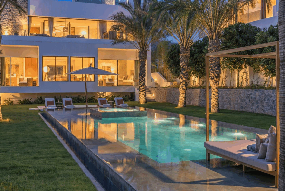 De villa wordt volledig gemeubileerd opgeleverd en straalt moderne elegantie uit, met subtiele Balinese invloeden. Met 426 m² woonoppervlak, 5 ruime slaapkamers en 5 luxe en-suite badkamers biedt dit huis het ultieme comfort en exclusiviteit. De woonkamer met kamerhoge raampartijen en de hoogwaardige open keuken creëren een licht en uitnodigend leefgedeelte met prachtig uitzicht.