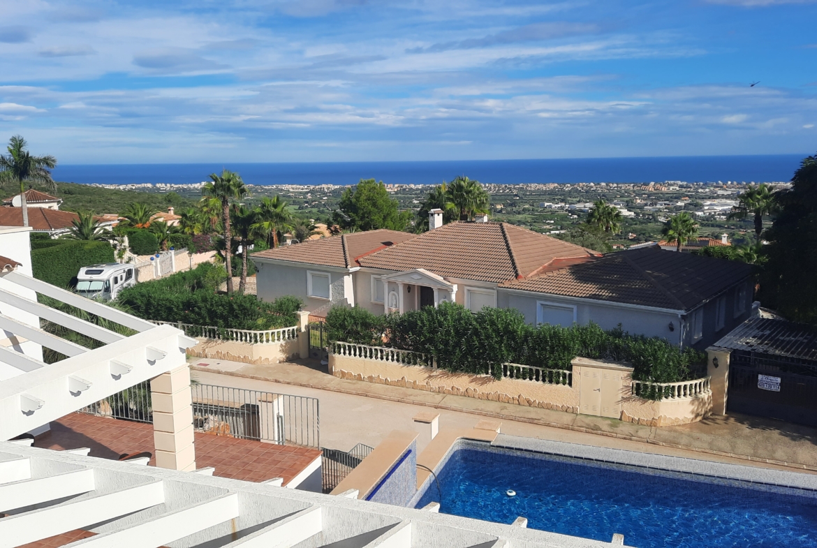 Buiten vindt u een onderhoudsvriendelijke tuin met automatisch irrigatiesysteem, diverse zonnige terrassen en een privézwembad met prachtig uitzicht op de bergen en deels op zee. Een dubbele garage met elektrische deur, alarmsysteem, video-intercom en elektrische poort zorgen voor extra gemak en veiligheid.