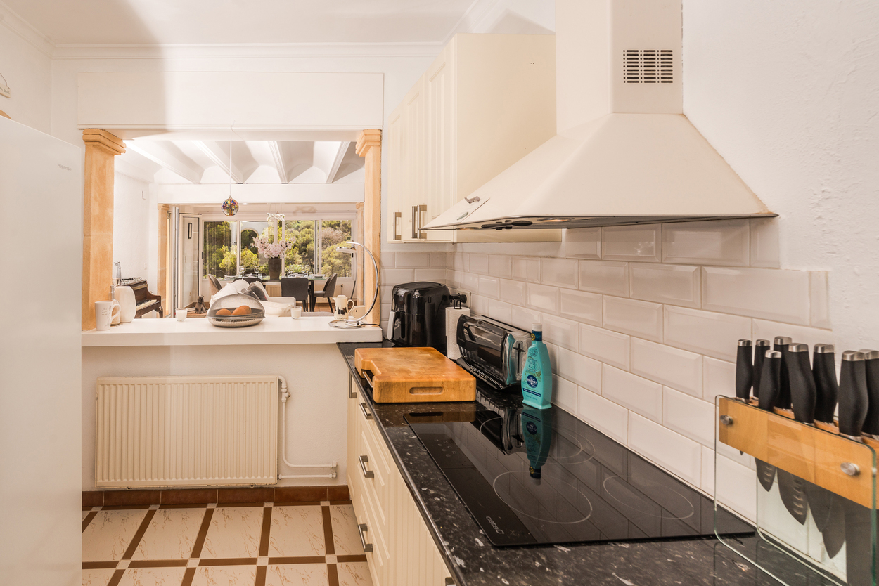 Prachtige villa met 4/5 slaapkamers in de wijk Granadella ~ Ambolo in Jávea. Deze villa legt de mediterrane essentie perfect vast. Het zonnige interieur en de stijlvolle gemeenschappelijke ruimtes smelten moeiteloos samen met de mediterrane buitenruimte. Perfect voor een familievakantie of als toevluchtsoord aan de kust in dit juweel aan de Costa Blanca. De doordachte indeling leent zich uitstekend voor een gezinswoning, maar kan ook gemakkelijk als twee aparte appartementen worden gebruikt. De villa is op het zuiden gelegen en heeft een oppervlakte van 246 m². De villa biedt maximaal zonlicht en warmte in de wintermaanden. De villa is voorzien van centrale verwarming op gas, 3 airco's, dubbele beglazing met horren en perken in de slaapkamers. De villa beschikt over een zomer- en winterkeuken, 2 naya's, een terras bij het 8×4 zwembad met een overdekte zithoek en een overdekte barbecue. Het warmwatersysteem werkt op gas of elektriciteit - perfect voor een retraite of een permanente woning. De deuren naar het pand zijn gepantserde deuren met het oog op beveiliging voor parttime bewoning, en het terrein is ommuurd en afgesloten. De villa is zorgvuldig gerenoveerd, met behoud van de natuurlijke mediterrane kenmerken: een Tosca-open haard, Tosca-bogen en een onderhoudsarme terrastuin. De villa beschikt over voldoende opbergruimte in de vorm van een onderbouw, een berging, een houthok en een carport. Belangrijkste kenmerken: 4/5 slaapkamers, op het zuiden gelegen (246 m² bebouwd), een zwembad van 8×4 m met overdekt terras, dubbele beglazing met horren, centrale verwarming op gas en 3 airconditioningunits, Tosca-open haard en bogen, beveiligd, afgesloten en ommuurd terrein, onderbouw, berging, houthok en carport, zomer- en winterkeukens, eenvoudig om te bouwen tot twee onafhankelijke appartementen. Bel ons nu voor een bezichtiging of meer informatie!
