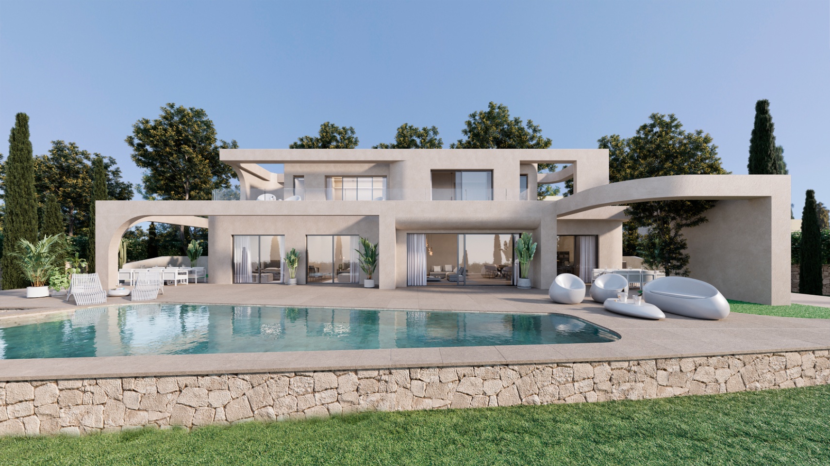 Gelegen op een royaal perceel van 1.000 m², beslaat de villa 165 m² over twee verdiepingen, met 445 m² gewijd aan terrassen en aangelegde tuinen. De architectuur mengt strakke, moderne lijnen met warme, natuurlijke tinten om een verfijnde maar uitnodigende sfeer te creëren. Grote ramen in de hele woning laten natuurlijk licht binnenstromen en omlijsten het adembenemende omringende landschap.