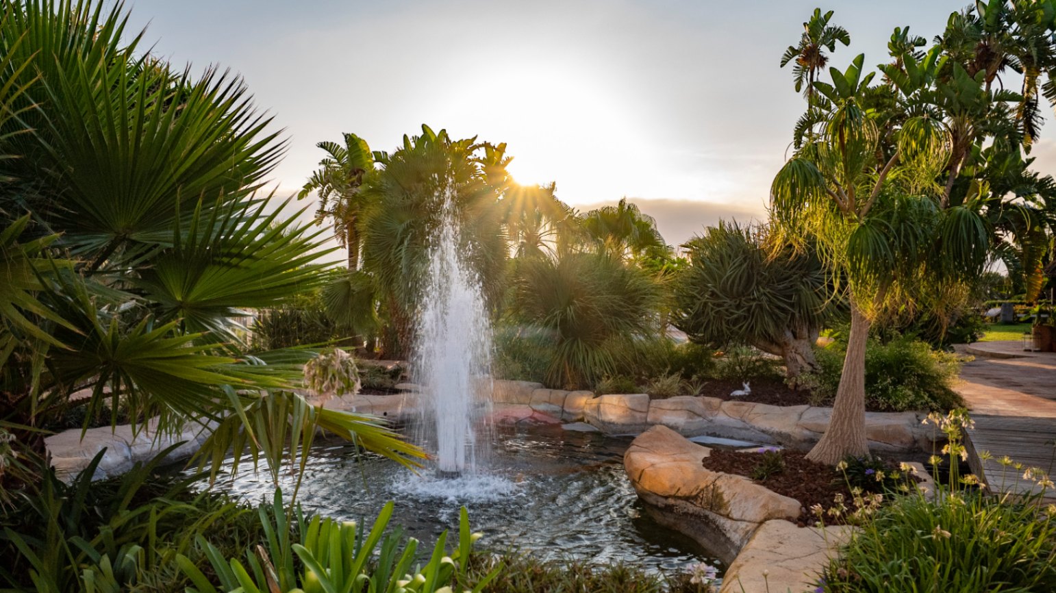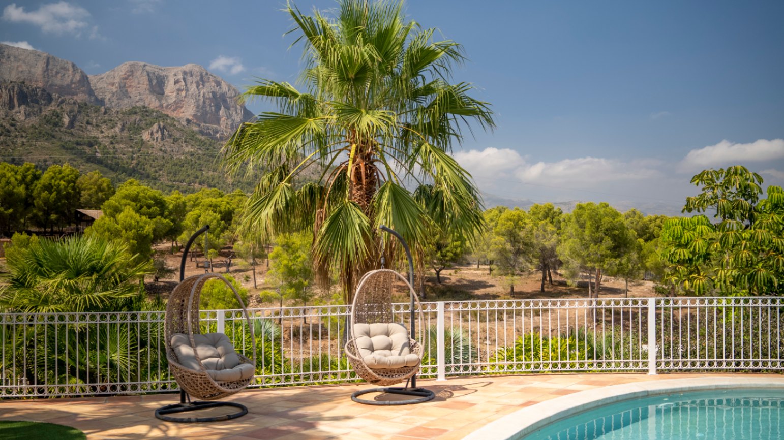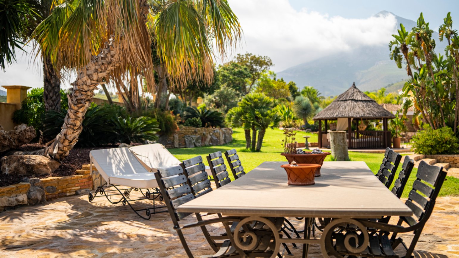 Het meest indrukwekkende aspect van deze luxe villa is echter de buitenruimte. De achtertuin presenteert een overloopzwembad, omringd door uitgestrekte terrassen met luxe ligstoelen en buitenmeubilair. Zorgvuldig aangelegde tuinen zijn versierd met een verscheidenheid aan exotische planten, fruitbomen en prachtige bloemen die een serene en rustgevende sfeer creëren.