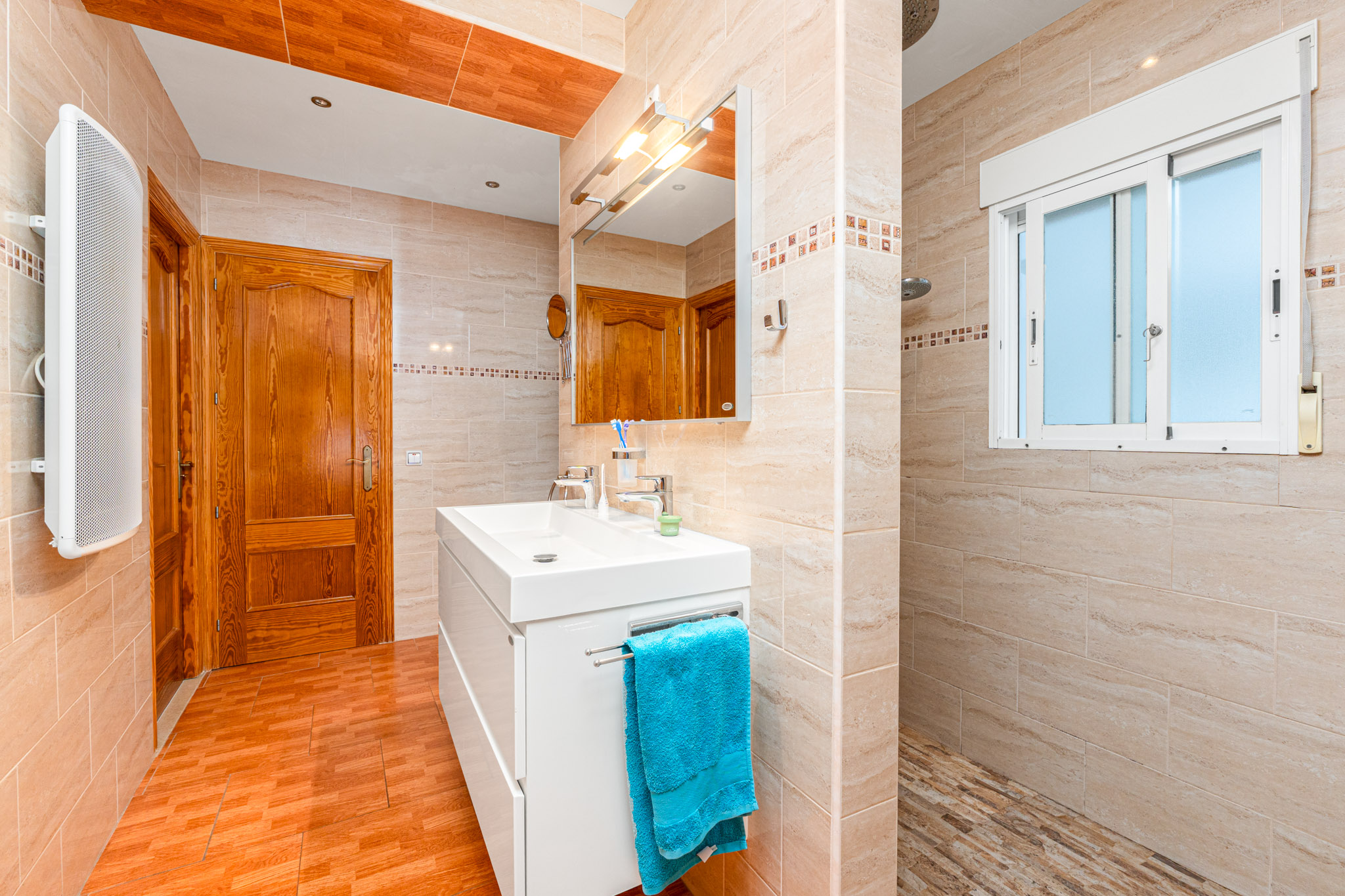 Op de benedenverdieping (straatniveau) bevinden zich vier slaapkamers (één met een aparte ingang, ideaal voor gasten of een kantoor), een complete badkamer en een wasruimte met directe toegang tot het zwembad, naast een opslagruimte.