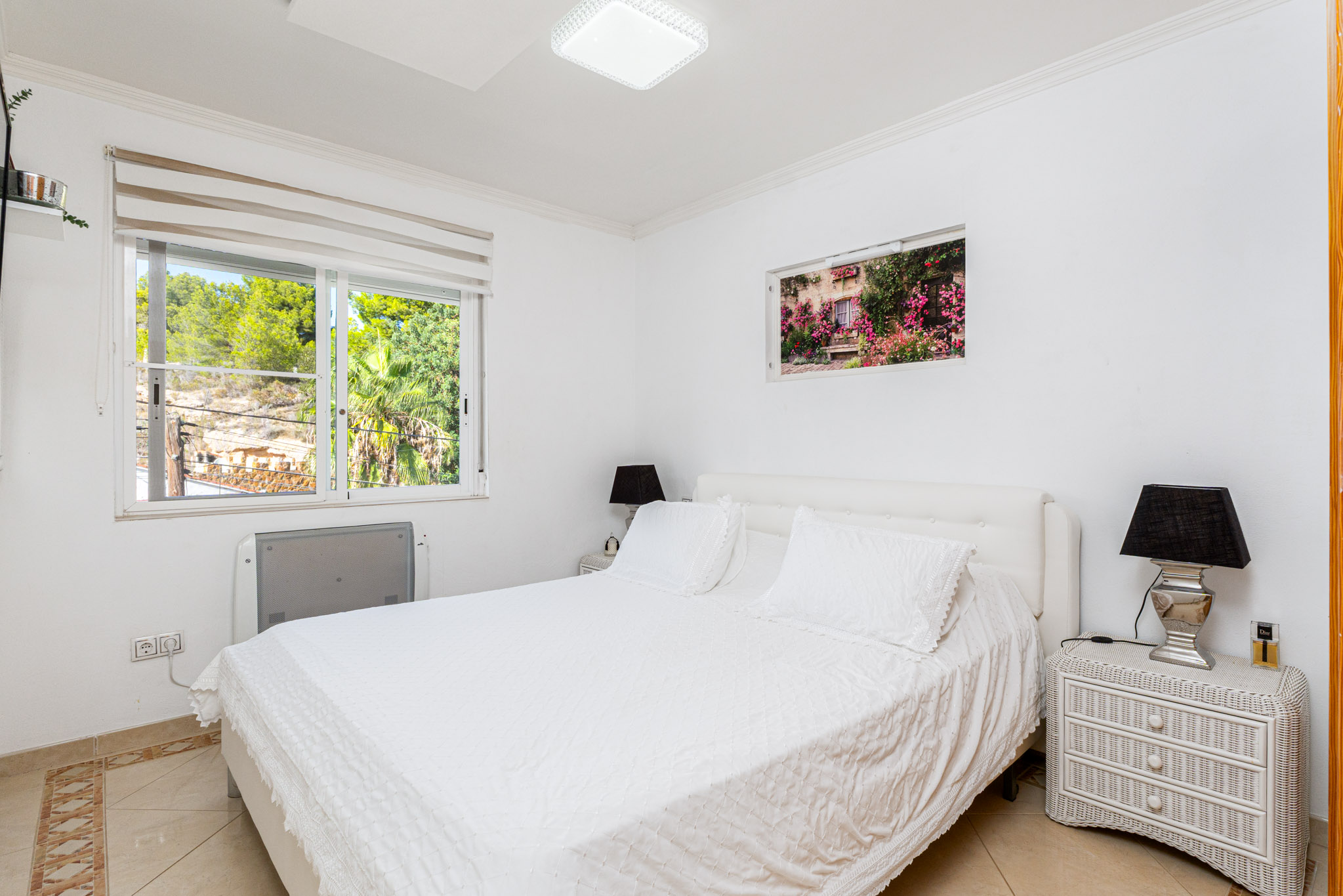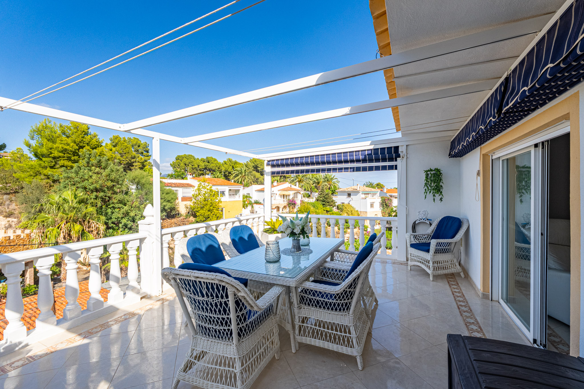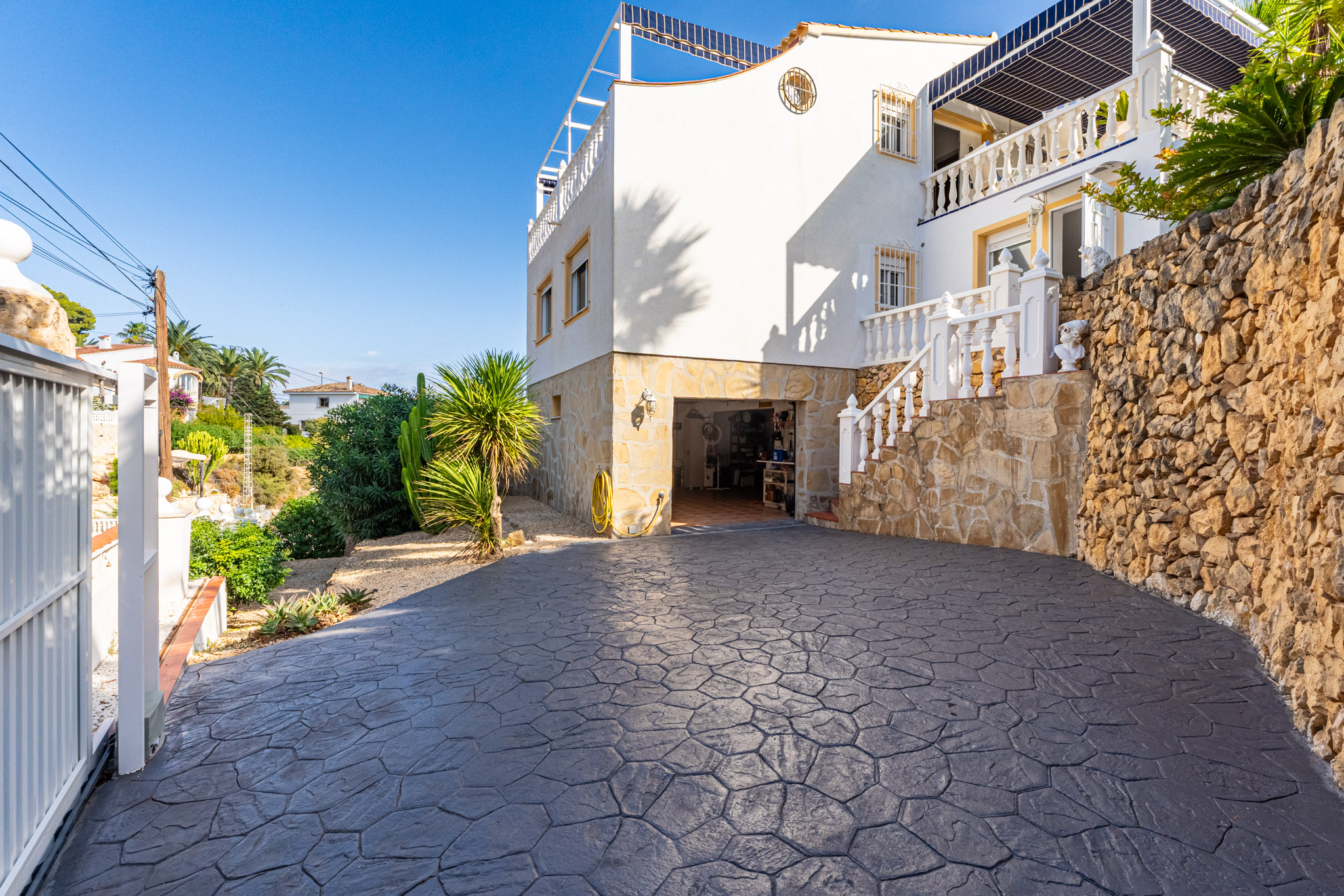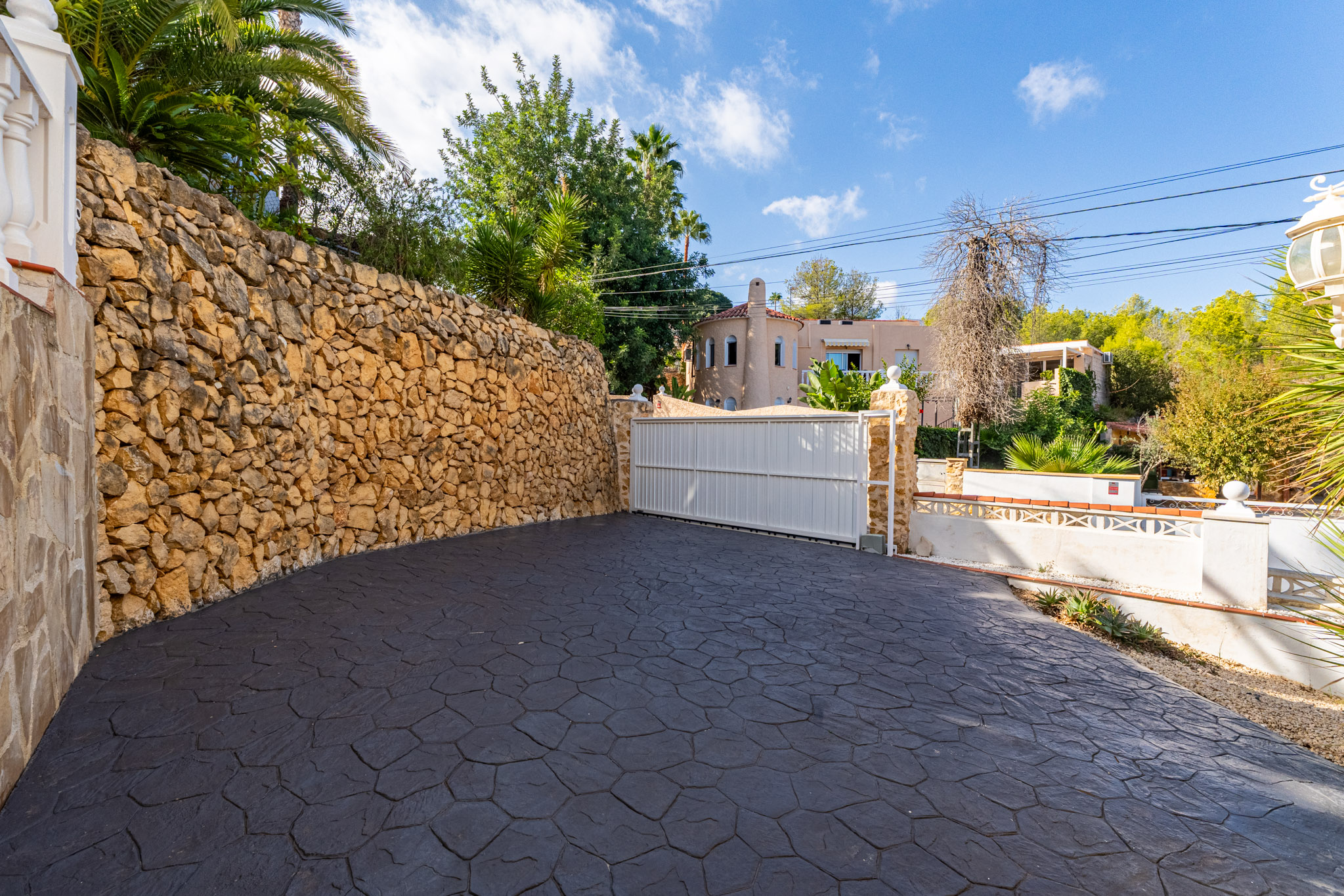 Deze woning heeft vier slaapkamers en twee badkamers, een wooneetkamer met open haard, een open keuken, meerdere terrassen met zon en schaduw uitgerust met zonneschermen, een tuin met irrigatiesysteem, privézwembad, garage met meerdere mogelijkheden en toegang vanaf twee straten. Gelegen in een rustige maar goed toegankelijke urbanisatie, biedt het een mediterraan oasis van comfort en charme aan de Costa Blanca.