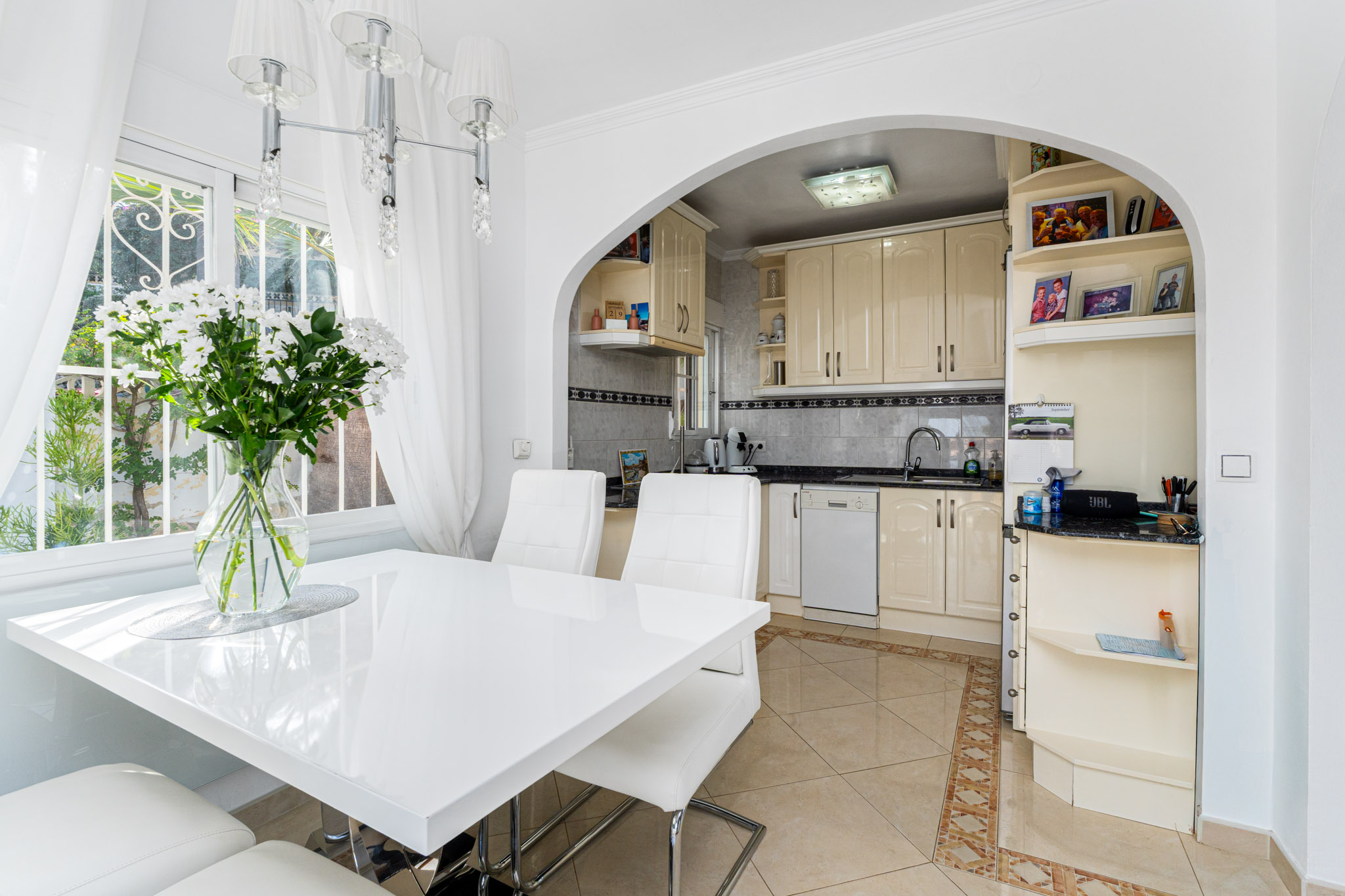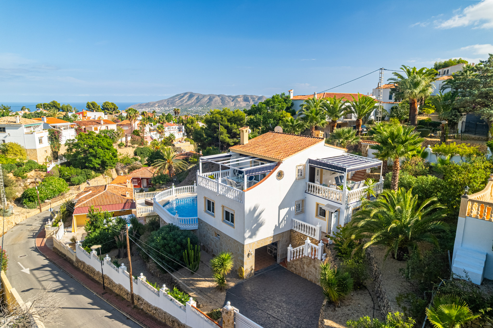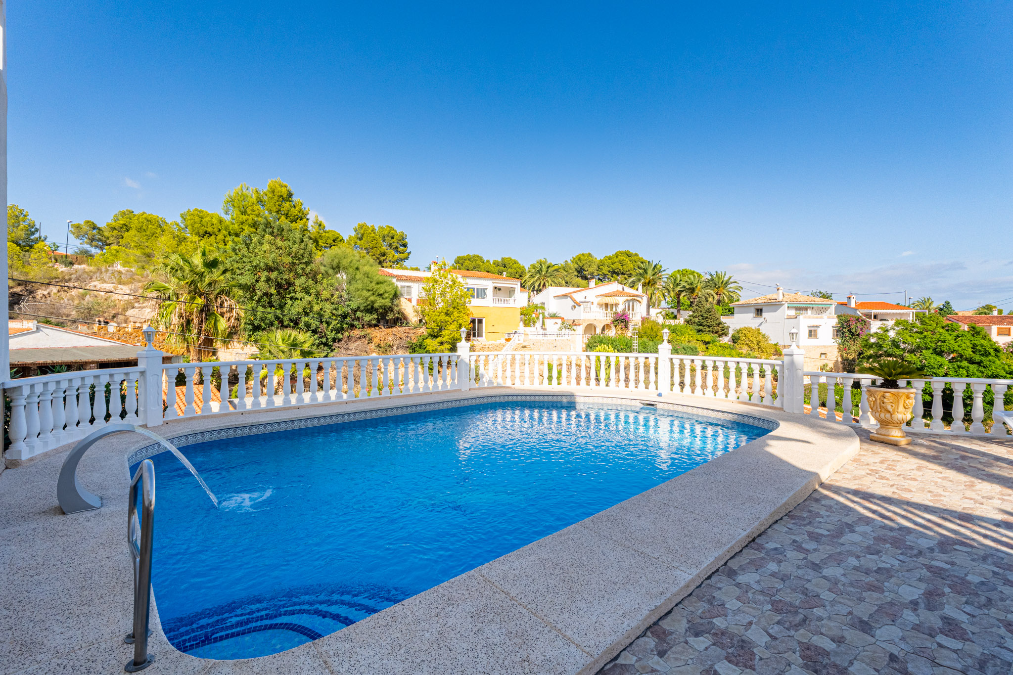 Deze woning heeft vier slaapkamers en twee badkamers, een wooneetkamer met open haard, een open keuken, meerdere terrassen met zon en schaduw uitgerust met zonneschermen, een tuin met irrigatiesysteem, privézwembad, garage met meerdere mogelijkheden en toegang vanaf twee straten. Gelegen in een rustige maar goed toegankelijke urbanisatie, biedt het een mediterraan oasis van comfort en charme aan de Costa Blanca.