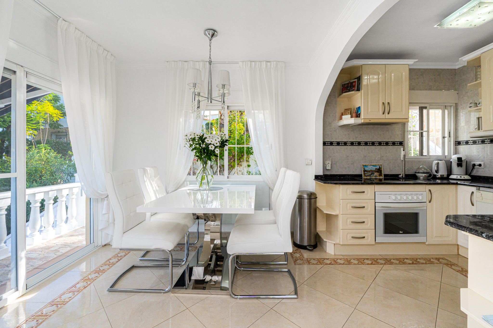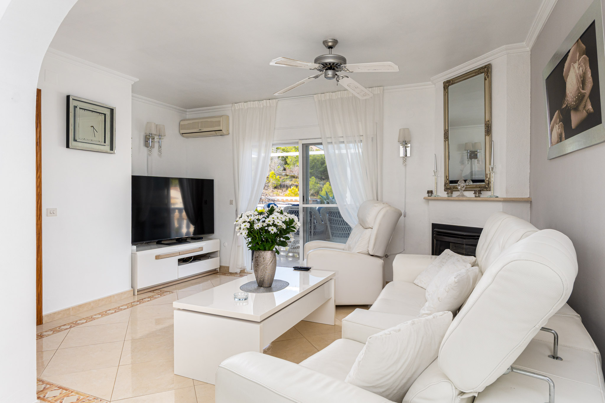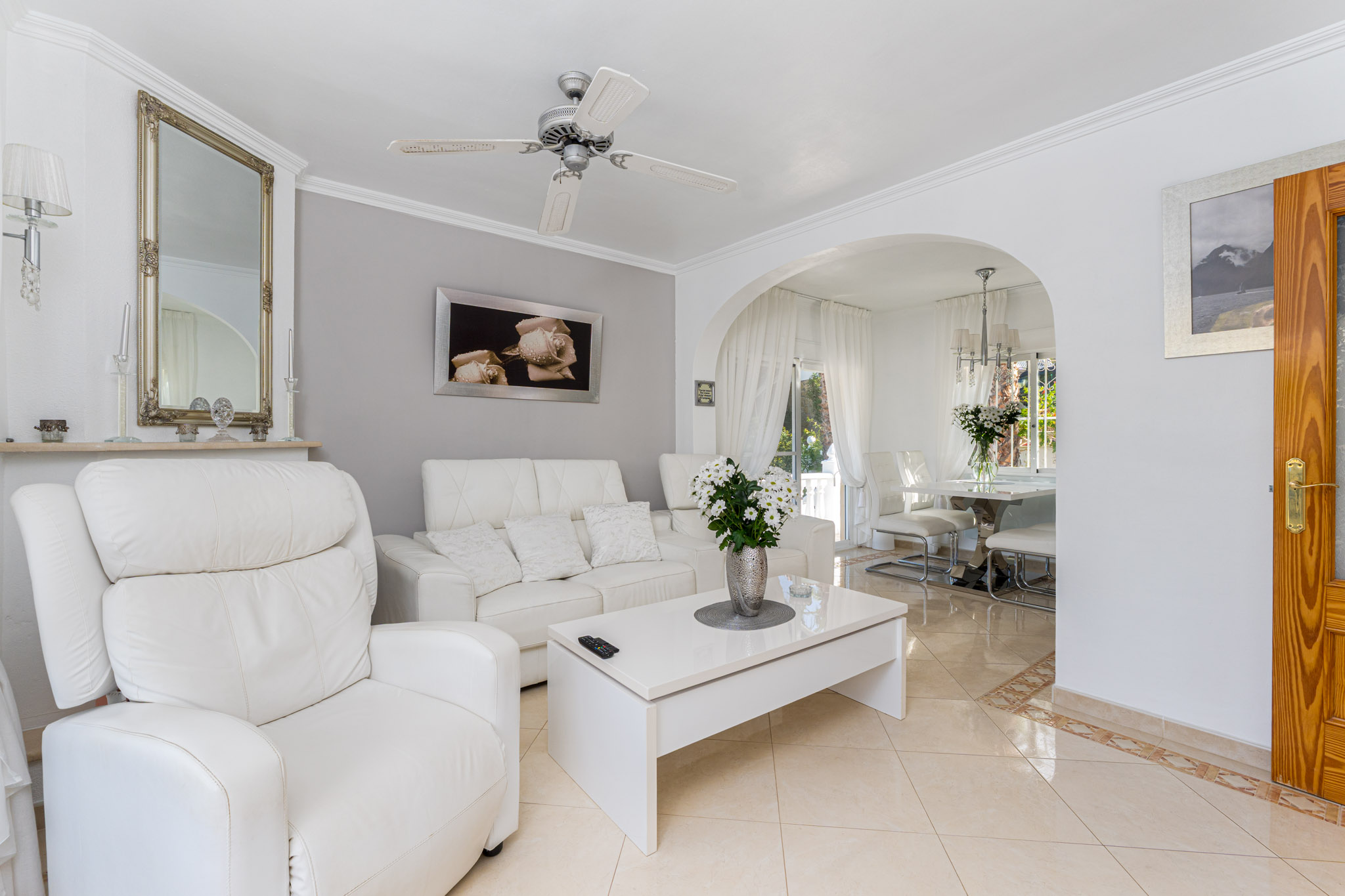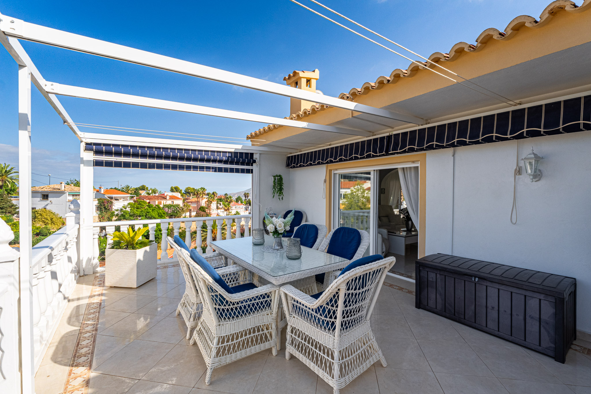 Deze woning heeft vier slaapkamers en twee badkamers, een wooneetkamer met open haard, een open keuken, meerdere terrassen met zon en schaduw uitgerust met zonneschermen, een tuin met irrigatiesysteem, privézwembad, garage met meerdere mogelijkheden en toegang vanaf twee straten. Gelegen in een rustige maar goed toegankelijke urbanisatie, biedt het een mediterraan oasis van comfort en charme aan de Costa Blanca.