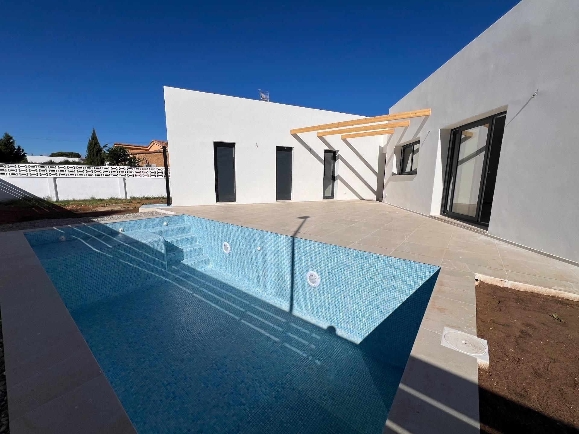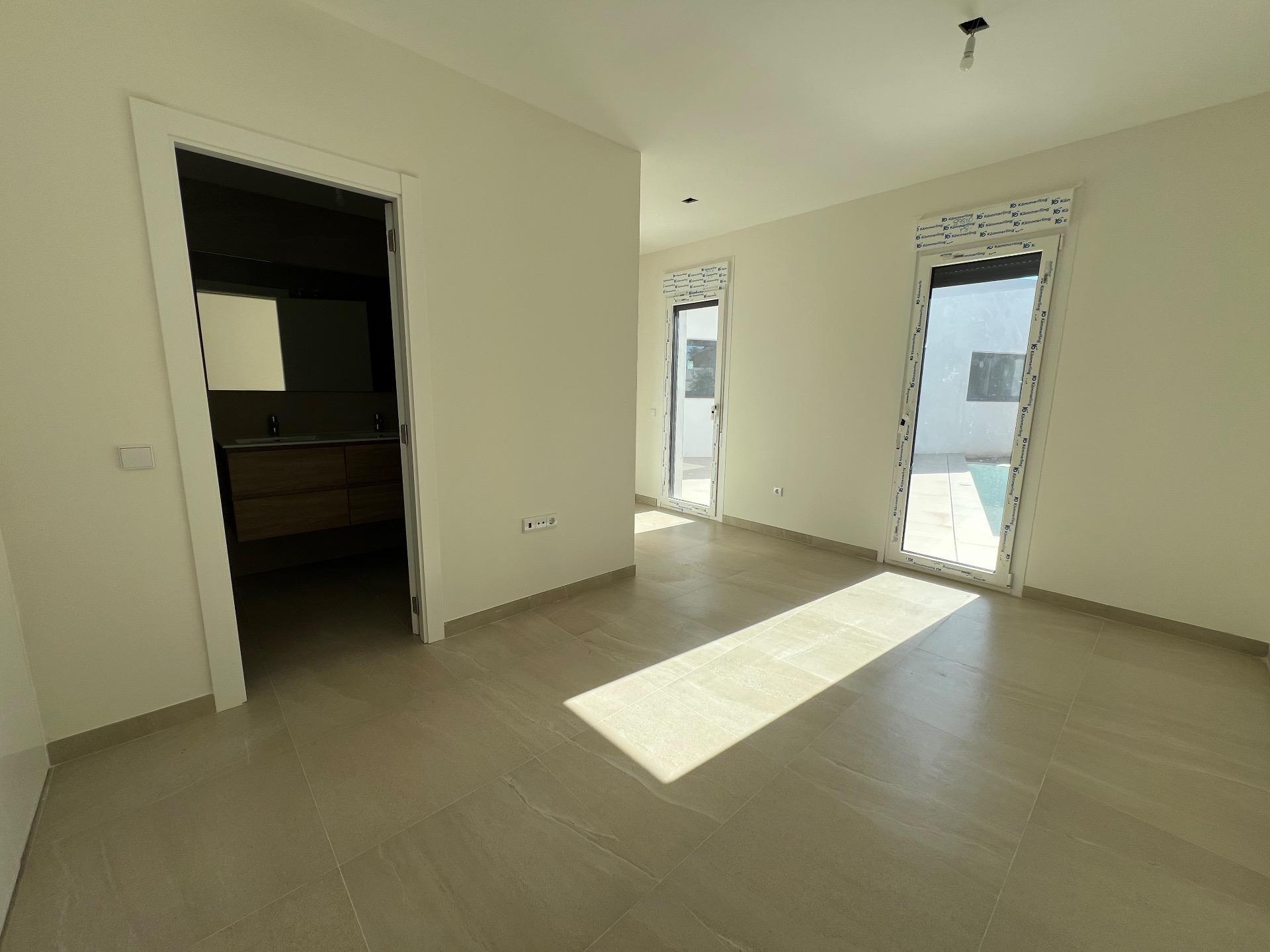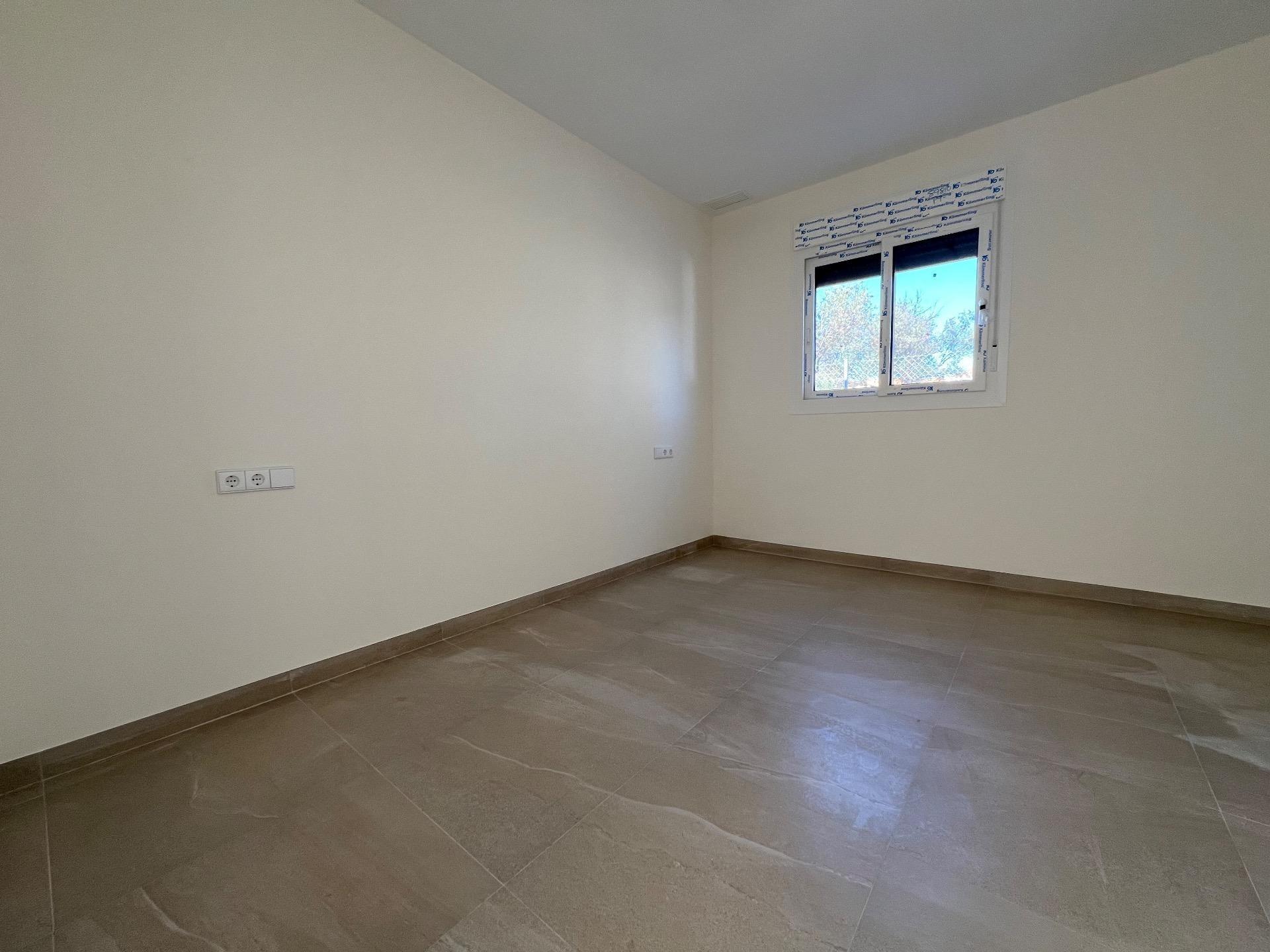 De woningen bestaan uit één verdieping, wat optimaal comfort biedt en geen trappen of oneffenheden in de ondergrond kent. De L-vormige indeling is ontworpen om twee ruimtes duidelijk van elkaar te onderscheiden: een deel als dagverblijf, met de woon-/eetkamer met een open keuken, en met directe toegang tot een praktisch terras met toegang tot een volledig overdekte barbecue/paellagrill, een gezellige ruimte om te delen met familie en vrienden. In het andere deel van het huis, dat we het slaapgedeelte noemen, bevinden zich drie slaapkamers en twee badkamers, waarvan er één en-suite is bij de hoofdslaapkamer.