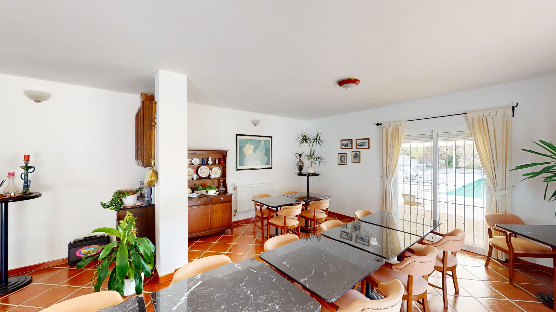 Wij presenteren u dit prachtige hotel/B&B dicht bij het charmante dorpje Macharaviaya. De woning heeft een perceel van 18.313 m2. Het hotel zelf is 500 m2 groot, perfect om uw droom van een eigen B&B of hotel te verwezenlijken. Als u het gebouw binnenkomt, komt u in een grote ruimte die wordt gebruikt als receptie, bar en eetzaal. Er zijn ook zithoeken en twee badkamers. Verbonden met deze ruimte is de keuken, die volledig is uitgerust met materialen van topkwaliteit. Er zijn ook twee slaapkamers op de eerste verdieping. Een van hen is ontworpen voor mensen met een beperkte mobiliteit. Het deurkozijn is breed genoeg om toegankelijk te zijn voor rolstoelgebruikers, en er zijn ook handgrepen naast het toilet en de badkuip. De tweede kamer kan ook worden gebruikt als slaapkamer, kantoor, opslagruimte, enz. Naast de twee kamers is er nog een persoonlijk toilet. Een buitentrap leidt naar de ruime slaapkamers. Er zijn er vijf. Ze hebben allemaal een eigen badkamer en inbouwkasten en sommige hebben hun eigen volledig verlichte terras. We vinden ook brede deurkozijnen in deze kamers. U zou een oprijplaat of een stoellift nodig hebben om met een rolstoel op deze verdieping te komen. Deze woning kan volledig worden aangepast aan personen met beperkte mobiliteit. Buiten is er een zwembad van 12 x 6 meter. Ideaal om af te koelen op warme zomerdagen. Verder is er een tuin, parkeerruimte voor meerdere auto's en een kleine kapel, die momenteel als opslagruimte wordt gebruikt. Hier heb je veel mogelijkheden voor verbouwing. Het hotel heeft een prachtig panoramisch uitzicht op de zee en de omgeving. Mis de kans niet om deze unieke eigendom te leren kennen en inspiratie op te doen over hoe u het naar uw eigen smaak zou kunnen verbouwen.