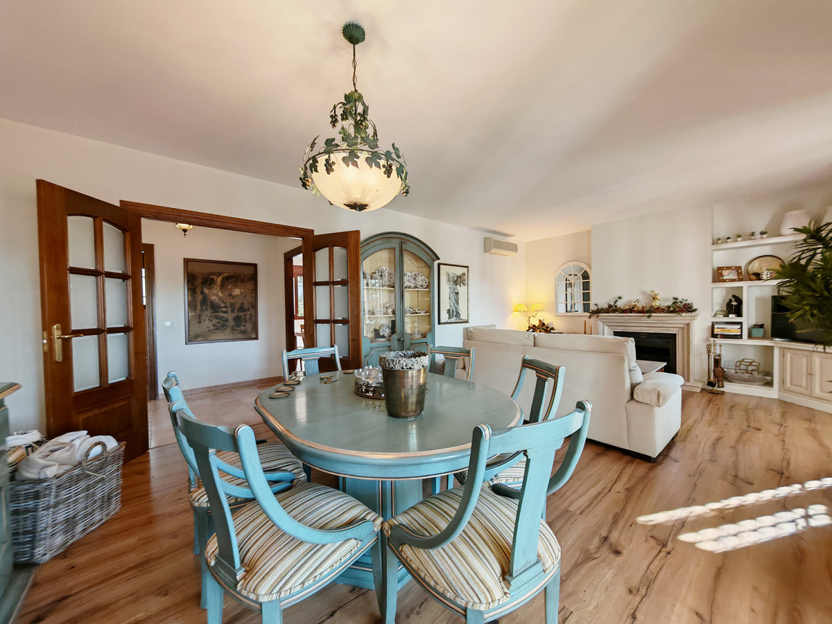 Binnen vindt u een ruime woonkamer, een volledig uitgeruste keuken, bijkeuken, wasruimte, berging en diverse multifunctionele ruimtes zoals een kantoor, studeerkamer en speelkamer. De villa is voorzien van airconditioning, inbouwkasten, elektrische rolluiken, satelliet-tv, camerabewaking en een watertank. De woning wordt ongemeubileerd verkocht en verkeert in goede staat.