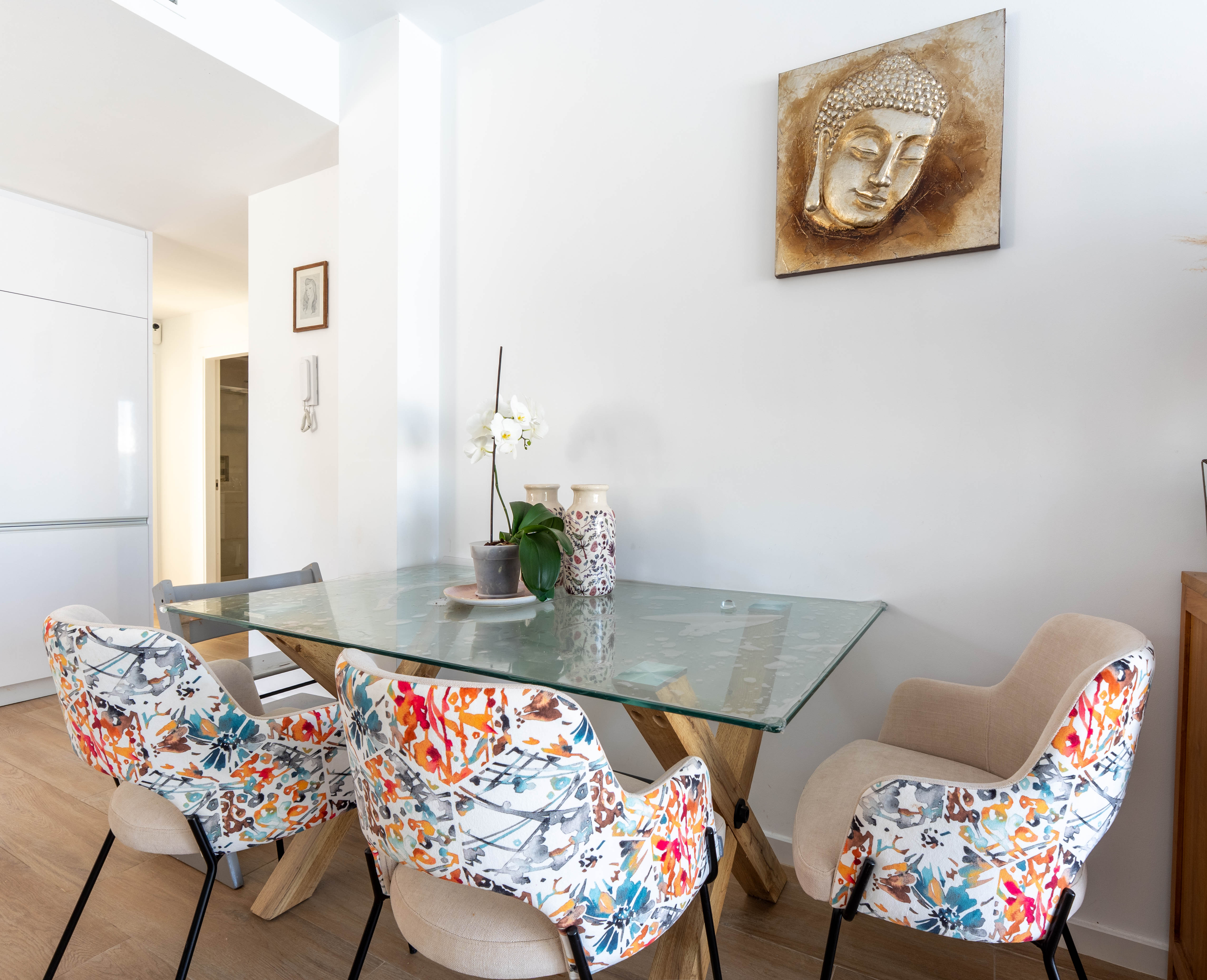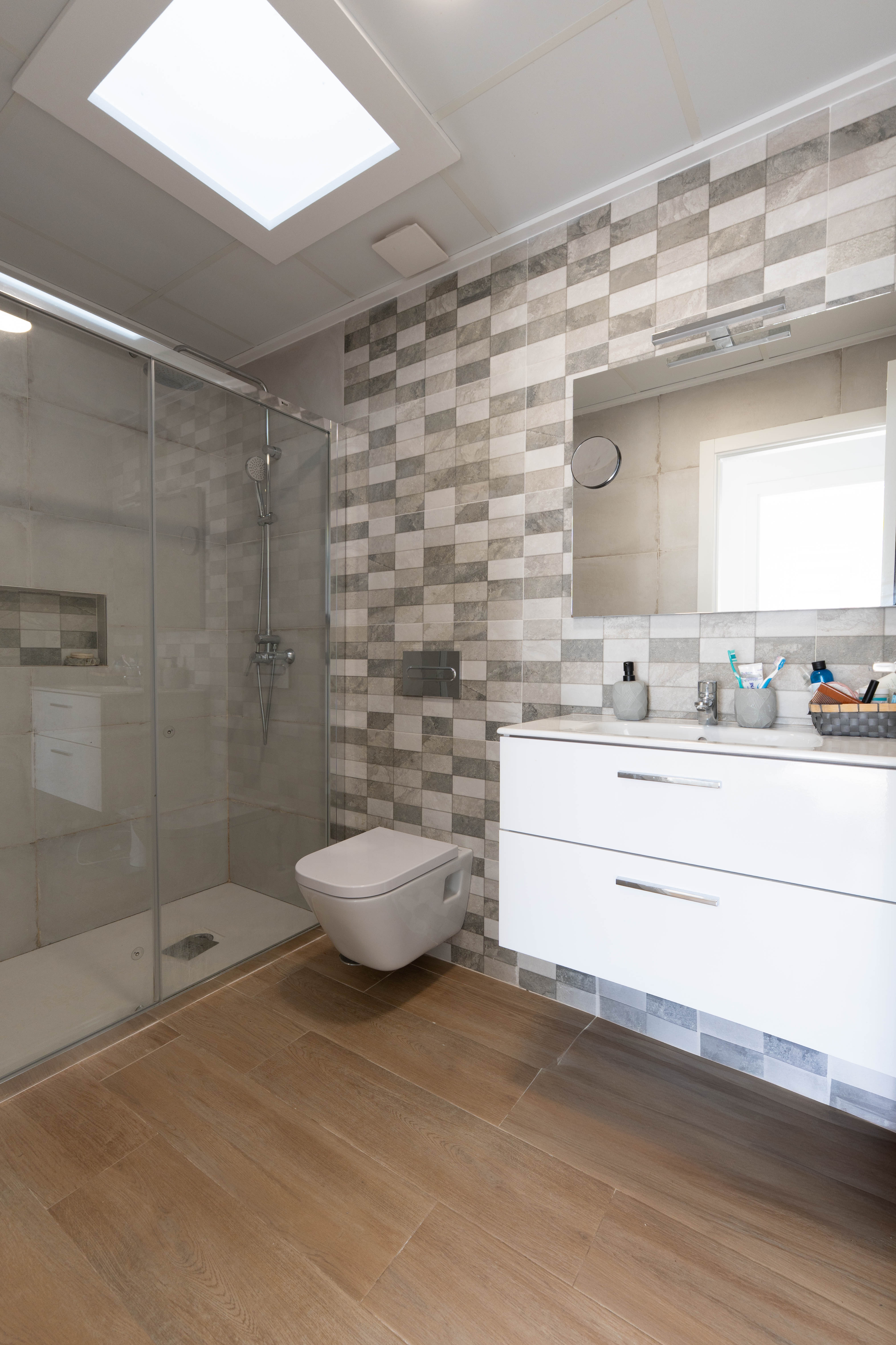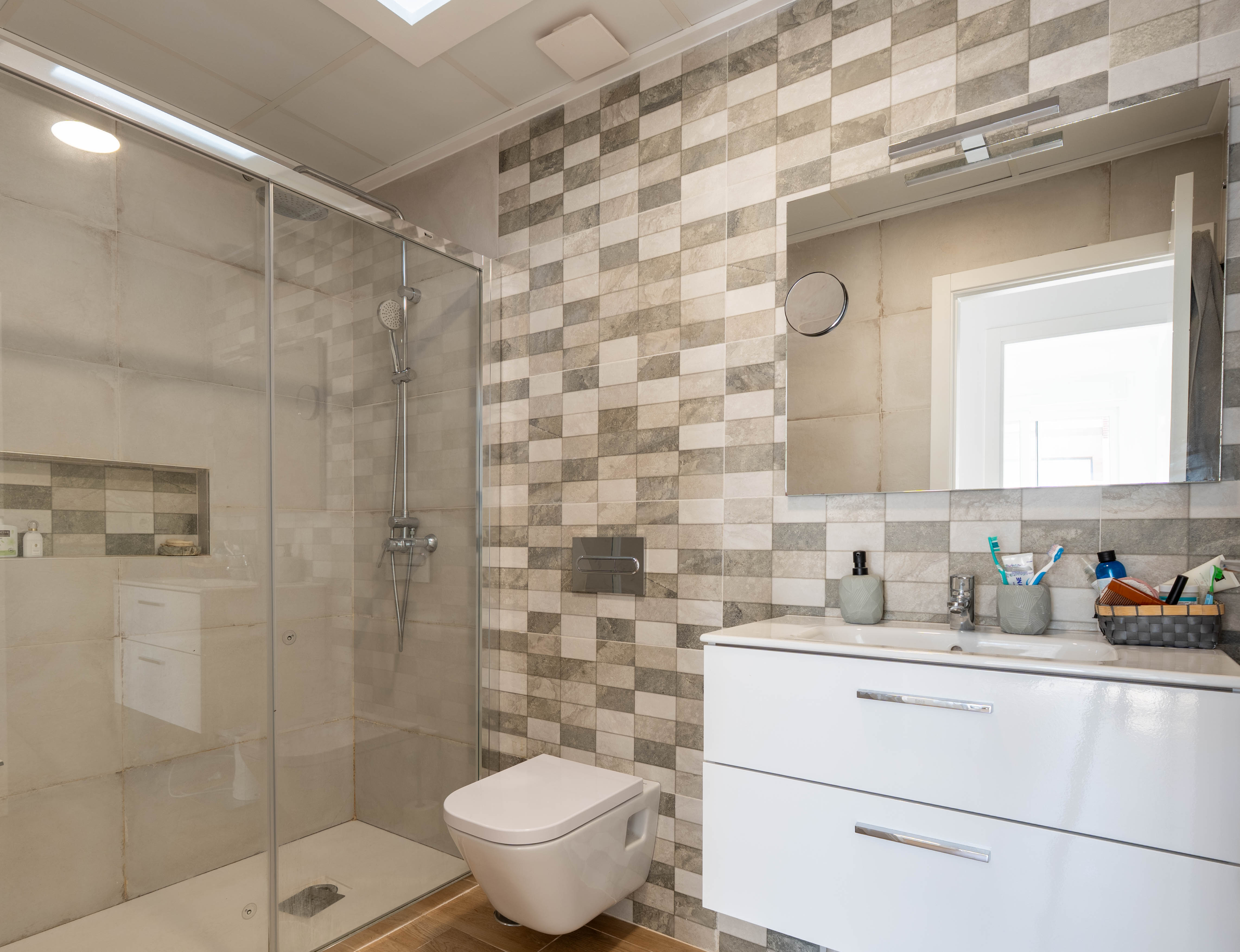 De woningen zijn ontworpen in een moderne en tijdloze stijl, die functionaliteit combineert met esthetiek. Ze beschikken over drie ruime slaapkamers, perfect voor gezinnen of gasten, en drie complete badkamers met een strak en eigentijds design. De keuken, volledig uitgerust met apparatuur, is geïntegreerd in de woon-eetkamer in een open ruimte die lichtinval en gezelligheid bevordert. Elke hoek is geoptimaliseerd om comfort en gebruiksgemak in het dagelijks leven te bieden.