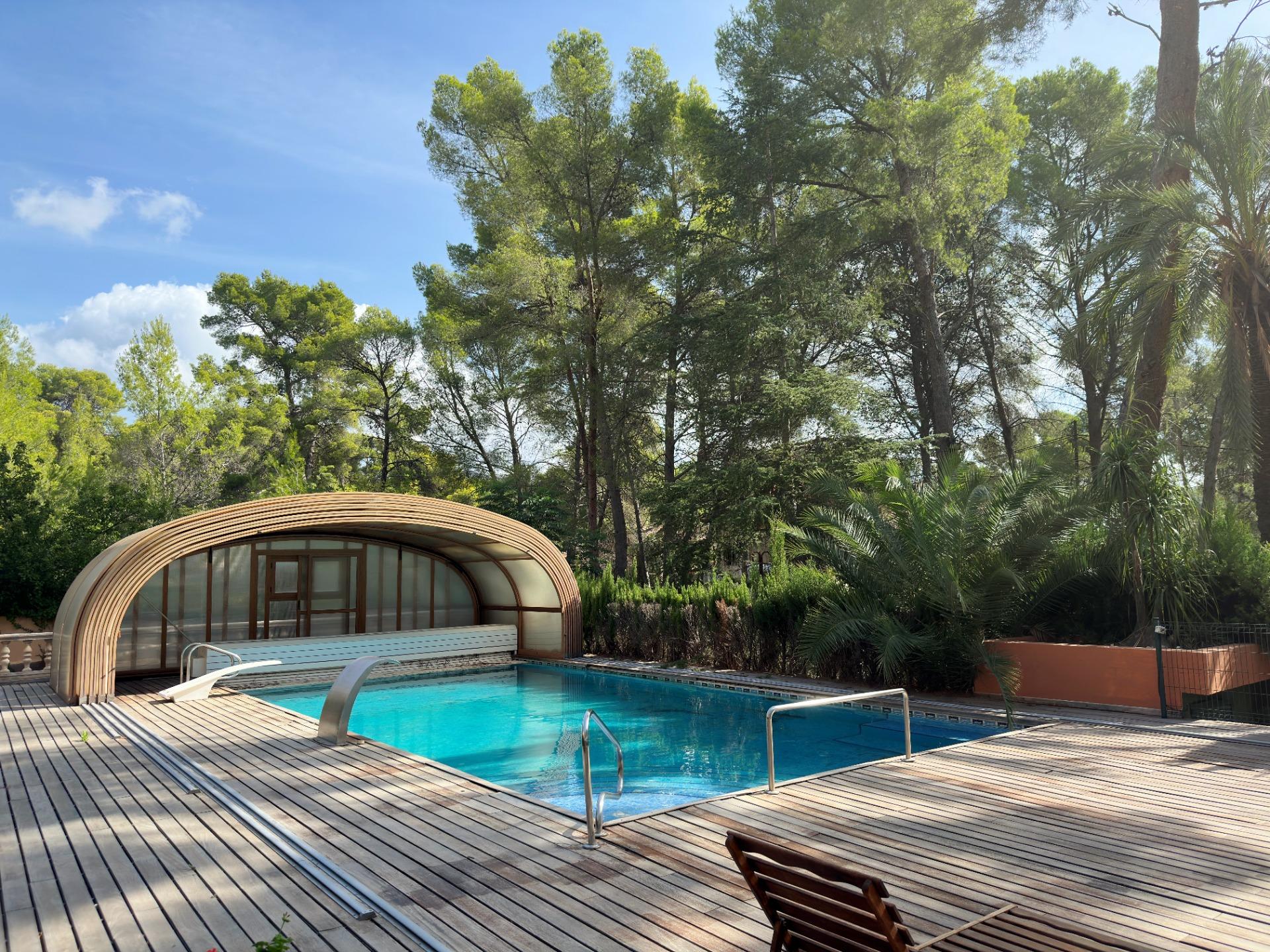 * Reference 2311 * Type of Operation For sale * Type of property Single family house * Zone / City LA CARRASCA / Naquera * Built Surface 739 m2 * Condition Ready to move and live * Bedrooms 5 * Bathrooms 4 * Year built 1976 * Levels 2 * Floor 1 * Total Plot Size 5013 m2 * Exterior type External * Kitchen type Independent * Heating type Propane gas * Hot water Propane gas * Interior Carpentry Wood * Exterior Carpentry Aluminum - Wood * Type of Floor Marble * Views Mountains * Regime Libre * Garage Included * Phone Line * Solarium * Terrace * Wardrobes * Storage Room * Armored Door * Heating * Air Conditioning * Community Pool * Private Pool * Light * Water * Chimney * Parking Included * Automatic Watering * Auto Doors * Exterior * Garden * Bright * Green Area * Urbanizacion * Fenced * Trees * Buses * Schools * Mountain * Playground