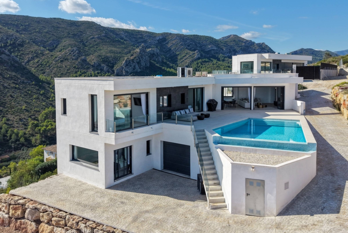 Villa Solana. Deze charmante villa, die een sfeer van stille verfijning uitstraalt, biedt een indrukwekkend panoramisch uitzicht over groene valleien, dat zich gracieus uitstrekt van het legendarische kasteel Ocaive tot de verre bergen in de verte.~~Villa Solana is gunstig gelegen, maar wordt nooit belemmerd door de drukte van de moderne tijd. Het is slechts een kwartiertje rijden naar de glinsterende Middellandse Zeekust, of een korte rit van vijf minuten met de koets naar het aangename stadje Pedreguer, dat van alle gemakken is voorzien.~~Wat de villa zelf betreft: de bouw staat op het punt om onmiddellijk te beginnen en de oplevering wordt verwacht over ongeveer veertien maanden – precies op tijd voor de veeleisende nieuwe eigenaar om optimaal te kunnen genieten van het komende zomerseizoen. Het ontwerp is, kortom, doordacht. De woning is elegant verdeeld over één verdieping en biedt drie ruime slaapkamers en twee goed uitgeruste badkamers. Het hart van de woning – een prachtige open leefruimte – loopt naadloos over in een ruim terras en een glinsterend zwembad, waardoor u moeiteloos buiten kunt vertoeven en in alle rust kunt genieten.~~De architectonische gevoeligheid is zowel slim als esthetisch aantrekkelijk; natuurlijk licht dringt door in elke hoek, terwijl subtiele details een sfeer van ingetogen elegantie creëren. Ook de aanwezigheid van voorgeïnstalleerde airconditioning met warme en koude lucht is vermeldenswaard, wat het hele jaar door comfort garandeert, ongeacht de grillen van het seizoen. De tuin wordt zorgvuldig aangelegd en vormt een groene omlijsting van het charmante silhouet van de villa.~~Villa Solana biedt een unieke kans om een woning te verwerven die zowel modern is qua comfort als tijdloos qua omgeving. Voor wie op zoek is naar een oase van rust te midden van de schoonheid van het Spaanse platteland, met gemakkelijke toegang tot de geneugten van de kust, is deze prachtige villa een absolute aanrader.~~Wilt u meer informatie of een bezichtiging inplannen? Wij staan graag tot uw beschikking.